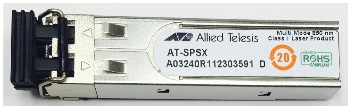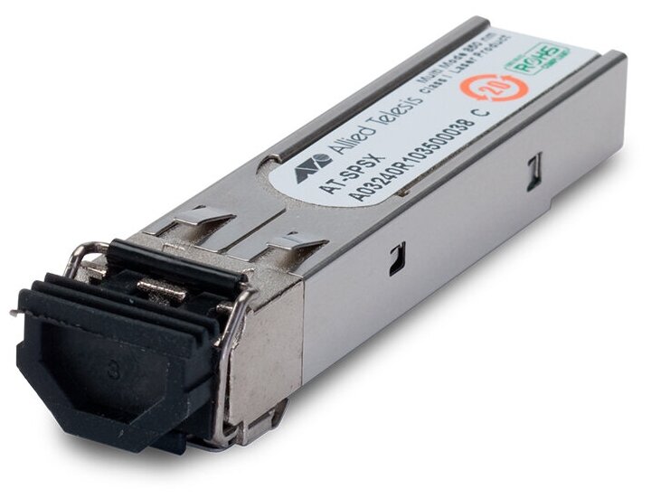 Трансивер Allied Telesis – гигабитный SX-приемопередатчик, обеспечивающий полнодуплексное гигабитное подключение на расстоянии до 550 м по многомодовому волокну.