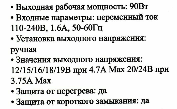 | Тип коннекторов | 3.5 x 1.35мм, 11 x 5мм, 7.9 x 5.5мм, 7.4 x 5.0мм,4.5 x 3.0мм,5.5 x 1.7мм, 4.0 x 1.7мм, 6.5 x 4.4мм, 6.3 x 3.0мм, 5.5 x 2.5мм, 5.5 x 2.1мм,4.8 x 1.7мм, 5.5 x 3мм |