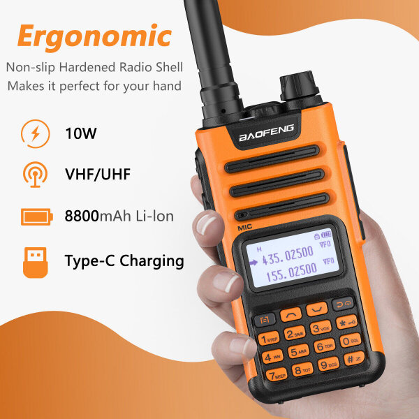 Baofeng - новая радиостанция от компании Baofeng в современном дизайне. Работает в VHF/UHF диапазонах, в частотной сетке: 136–174/400–520 МГц, а двухуровневый дисплей позволит вести прием и передачу сразу на двух каналах. Рация оснащена поддержкой CTCSS/DCS тонов, что исключит дополнительные помехи и позволит слышать только того, у кого установлены такие же значения. Пороговый шумоподавитель обеспечивает комфортные условия приёма в условиях помеховой обстановки благодаря 9-ти уровневой тонкой подстройке, а блокировка клавиатуры спасет от случайного нажатия клавиш.