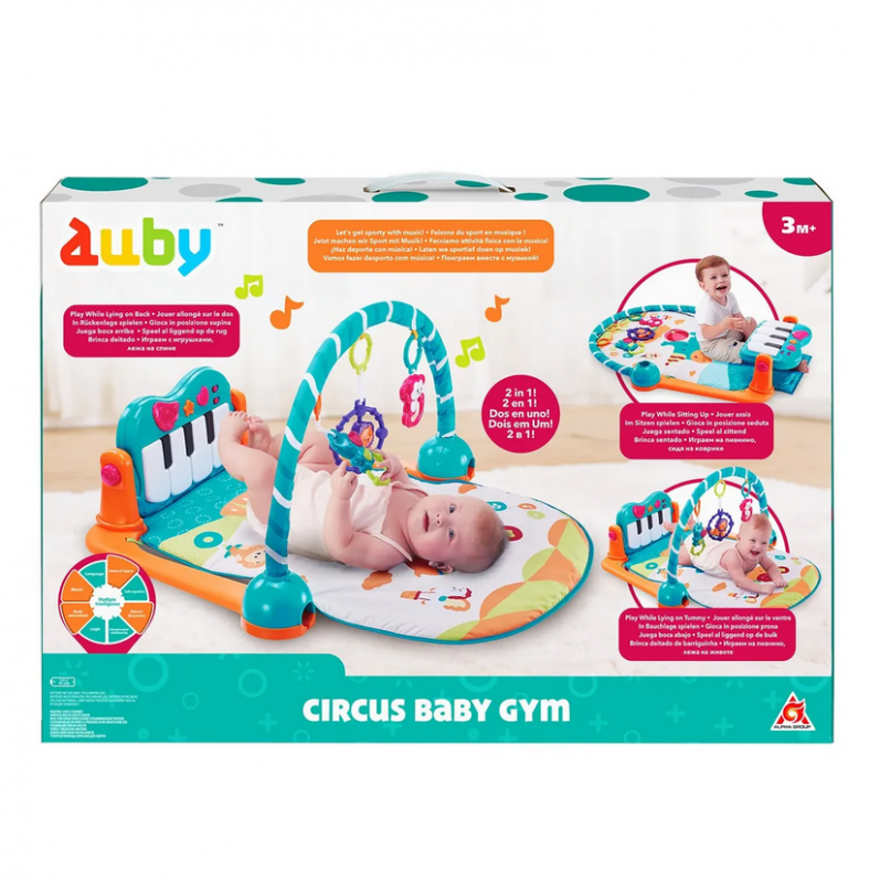 Мы - Аuby! Многофункциональные, интерактивные и развивающие игрушки для малышей. Нас создали для того, чтобы быть рядом с вашим ребенком с самого рождения и помогать вам в его развитии на каждом этапе. Я - развивающий музыкальный Коврик с пианино от Ауби! Первый друг новорожденных и малышей! С рождения помогаю знакомится с окружающим миром и наполняю мир новыми ощущениями. Способствую развитию слуха, тактильного восприятия, зрения, а также крупной и мелкой моторики. Развивающий Коврик Ауби это: -2 звуковых режима: мелодии и звуки более 9 вариантов; -2 режима громкости; -световые эффекты, которые будут привлекать внимание малыша; -коврик для разного возраста: можно играть лежа на спине и животе, а также сидя; - у пианино можно менять положение и его отсоединять; -дуги из мягкого материала, приятного на ощупь. Играй, расти и развивайся с Ауби! Для детей от 3 месяцев. В комплекте: коврик, дуга и 3 подвесные игрушки в виде животных разных цветов, пианино. Размер игрушки: 92*59*48 см. Тип упаковки – закрытая коробка размером 64*9,5*44 см. Изготовлено из высококачественных материалов, безопасных для детей. Для работы требуются 3 батарейки AA типа LR6 (напряжение 1.5V), не входят в комплект. Товар сертифицирован. Эксклюзивный дистрибьютор бренда "Ауби" на территории РФ - компания "РОСМЭН".