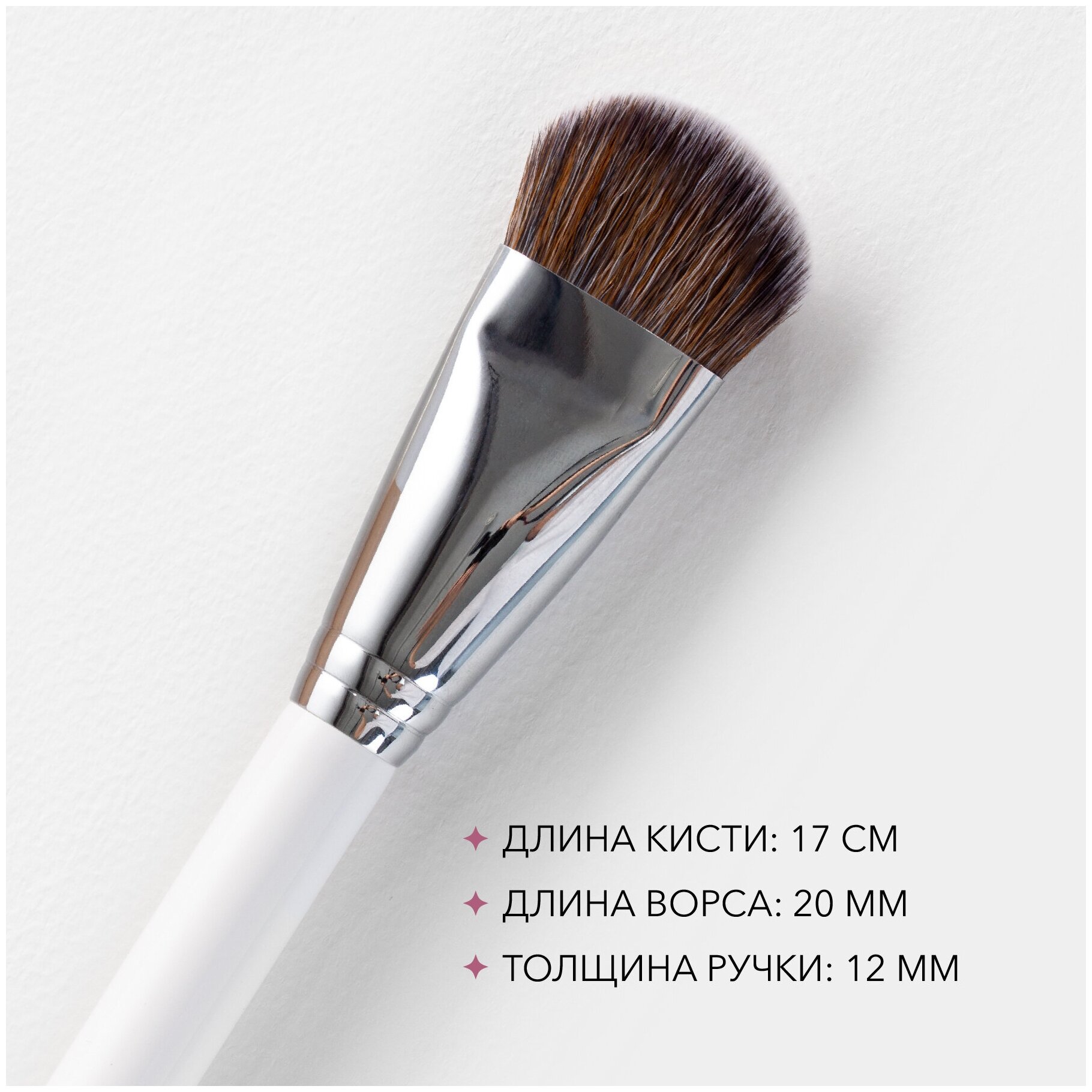 Кисть Foundation для тонкого нанесения тональных средств и также контуринга. Создает красивое и равномерное покрытие. Кисть для макияжа лица из высококачественного синтетического ворса. Тщательно продумана форма, размер и срез кисти, чтобы добиться безупречного результата при нанесении макияжа.