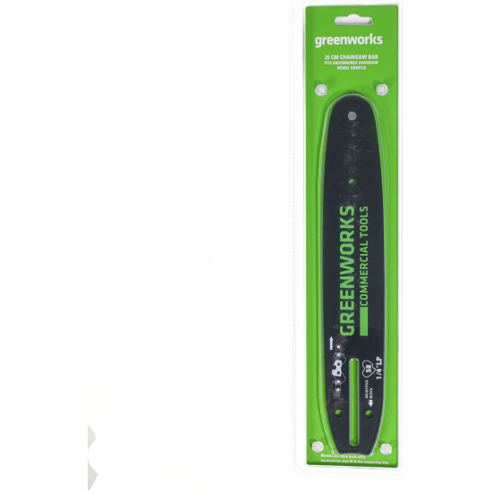 Запасная шина длиной 25 см предназначена для аккумуляторной цепной пилы Greenworks GD40TCS 40V 2003807. Паз составляет 1,3 мм.