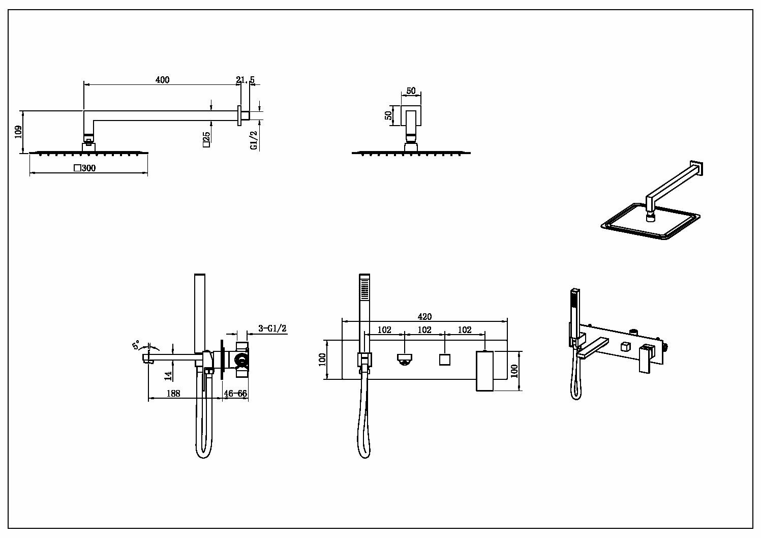 | Габариты верхнего душа | 300 |