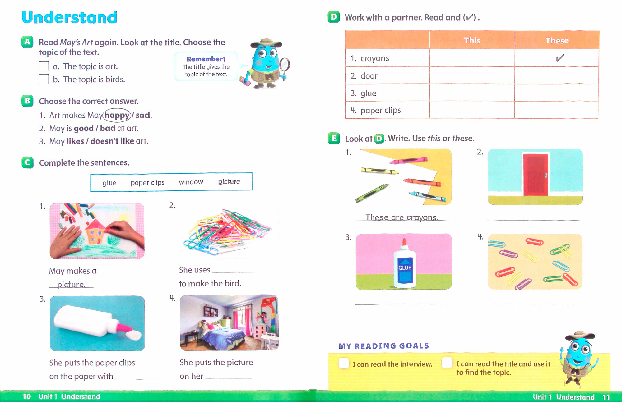 The Oxford Skills World: Reading with Writing Student Book / Workbook has six topics, and each topic has two units. There are clear learning goals on every page, each topic follows the same structure, and on-the-page characters Olly and Molly keep young learners active and engaged with the material.