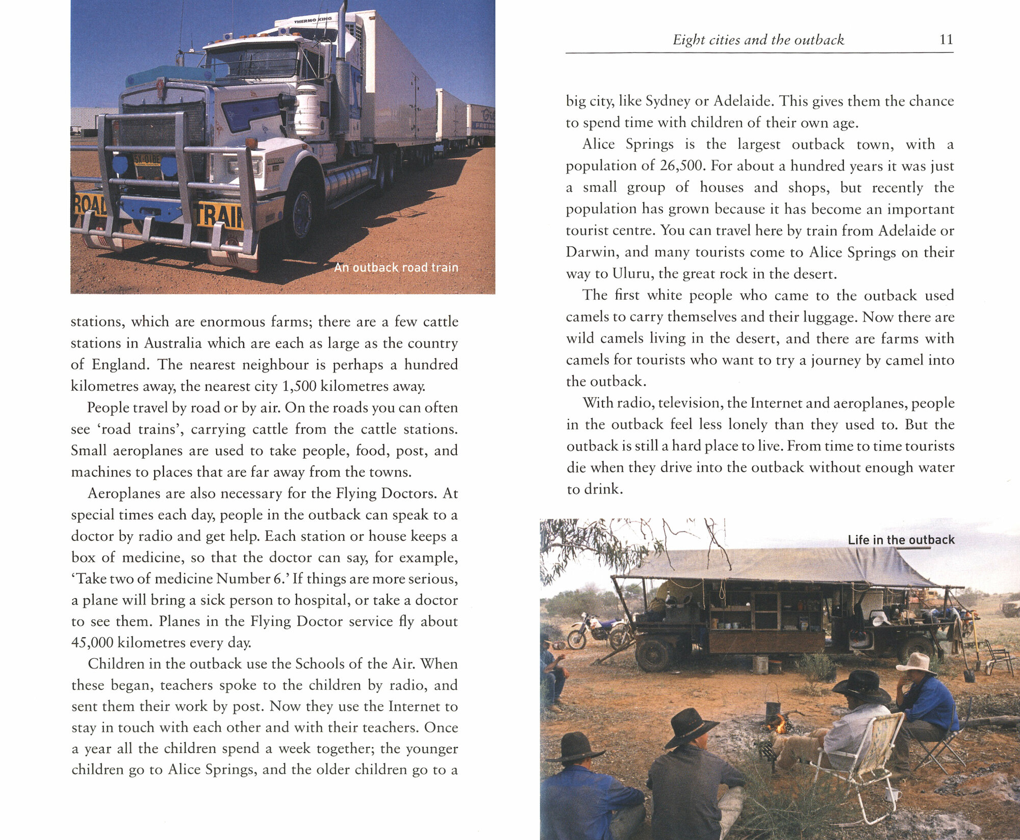 What do you find in these two countries at the end of the world? One is an enormous island, where only twenty million people live - and the other is two long, narrow islands, with ten sheep for every person. One country has the biggest rock in all the world, and a town where everybody lives under the ground; the other has a beach where you can sit beside the sea in a pool of hot water, and lakes that are bright yellow, green, and blue. Open this book and start your journey - to two countries where something beautiful or surprising waits around every corner.