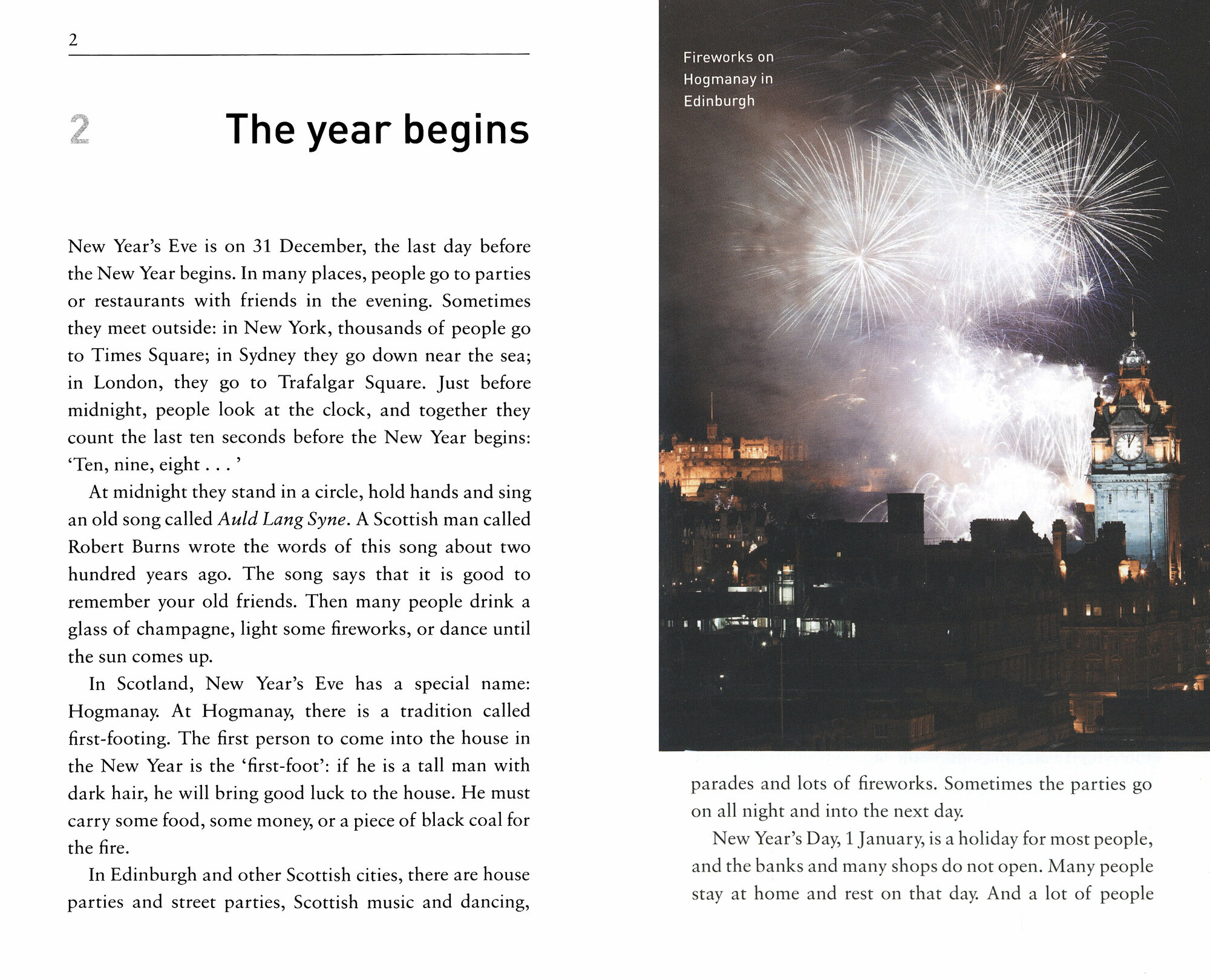 In English-speaking countries around the world people celebrate Easter, Valentine's Day, Christmas, and other special days. Some celebrations are new, others, like the summer solstice, go back thousands of years. What happens on these special days? Why is there a special day for eating pancakes? Who is the 'guy' that children take onto the streets in November? And where do many people like to spend the shortest night of the year in England? Come on a journey through a year of celebrations, from New Year's Eve to Christmas.