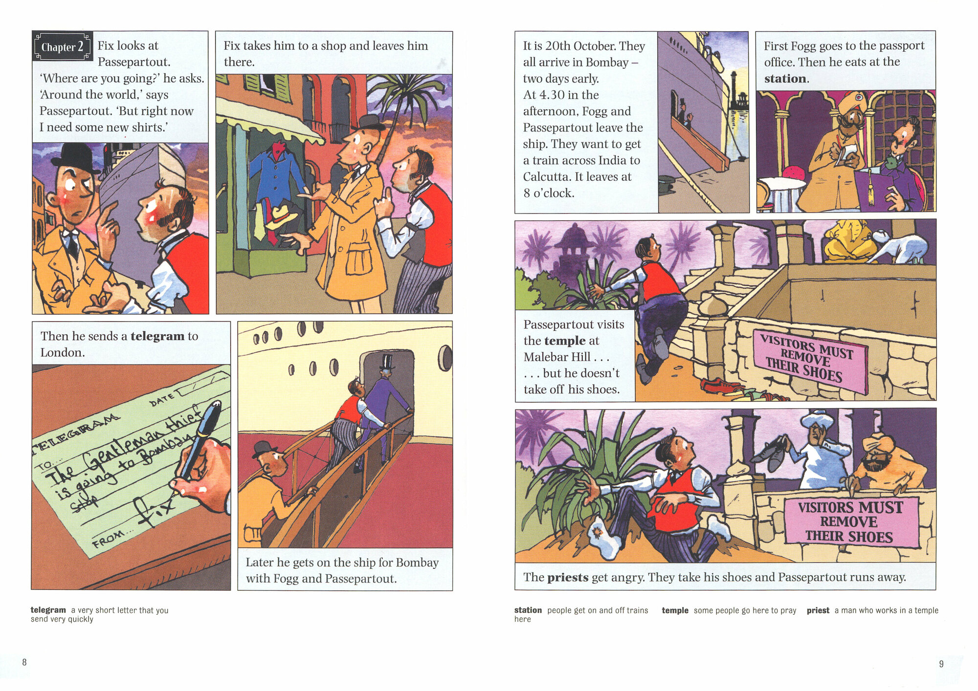 This is the beginning of one of Jules Verne's most exciting stories. Phileas Fogg must get back to London by December 21st or lose all his money. And with the help of his servant, Passepartout, Fogg travels in many ways - from train to elephant - and has some surprising adventures on the way.
