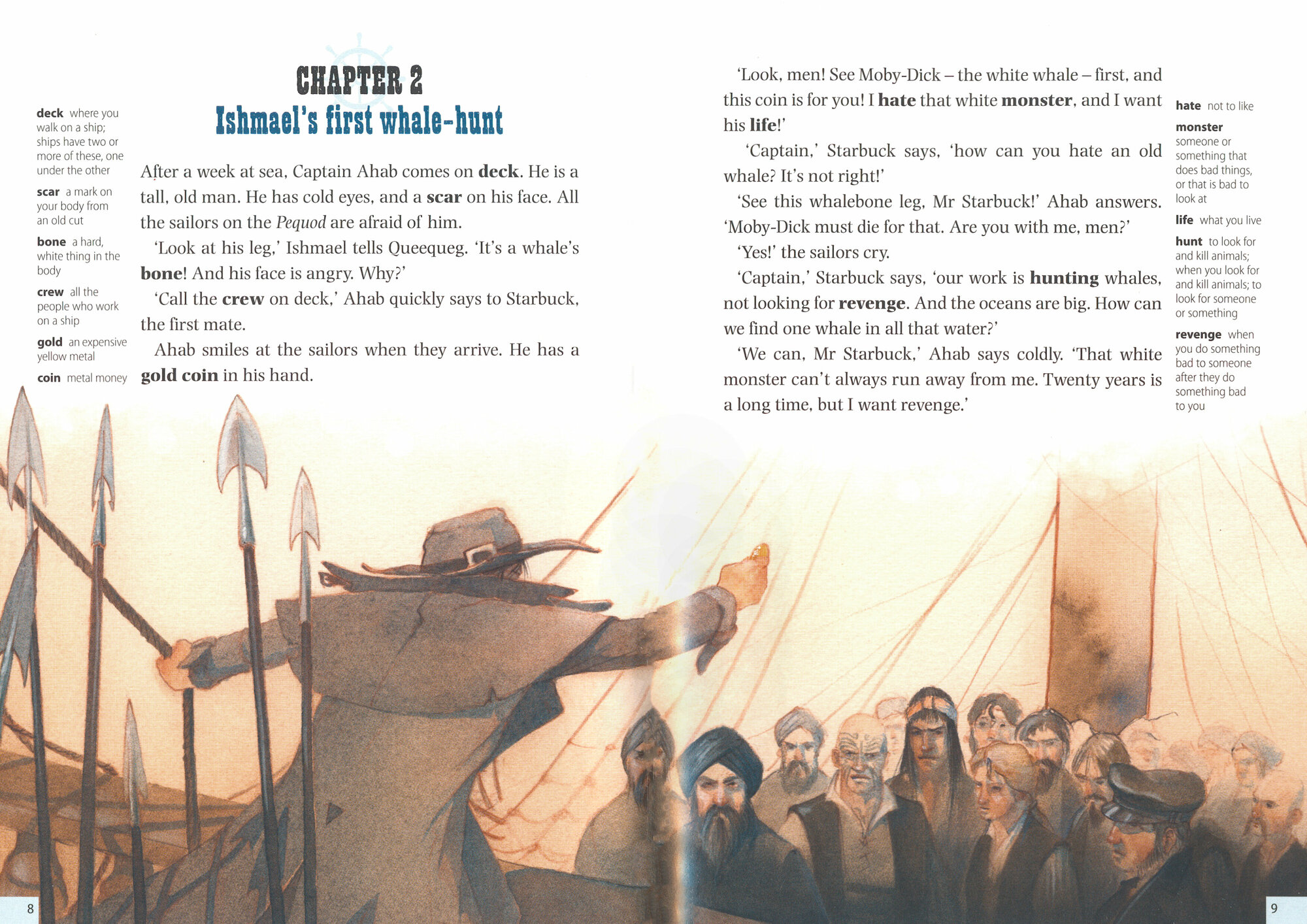 With Queequeg the harpooner, Ishmael takes work on Captain Ahab's whaling-ship, the Pequod. The ship's first mate, Starbuck, wants to hunt whales for their oil. But Captain Ahab isn't interested. Ahab wants revenge on the white whale - Moby-Dick! Who lives? Who dies? And what happens to Ishmael?