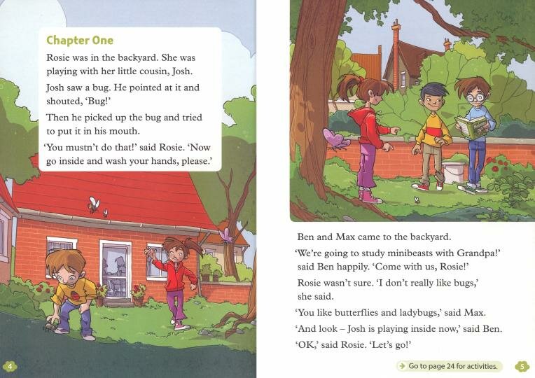 One day, Rosie, Ben, and his friend Max got very small -as small as bugs! This was a great way to study minibeasts, but now the backyard was full of danger: ladybugs, spider webs, and birds...