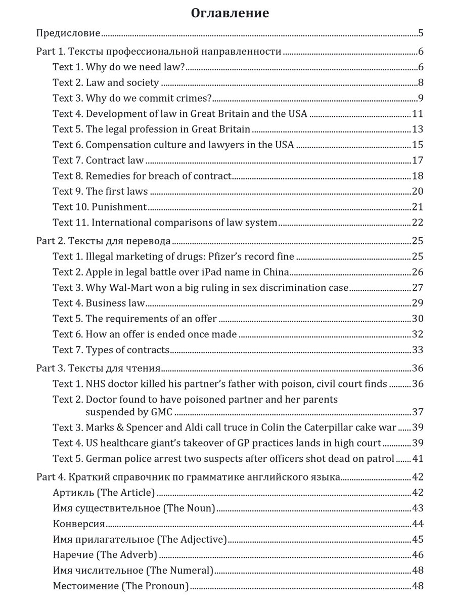 В пособие включены тексты юридической направленности и упражнения для отработки лексического материала, а также краткий грамматический справочник.