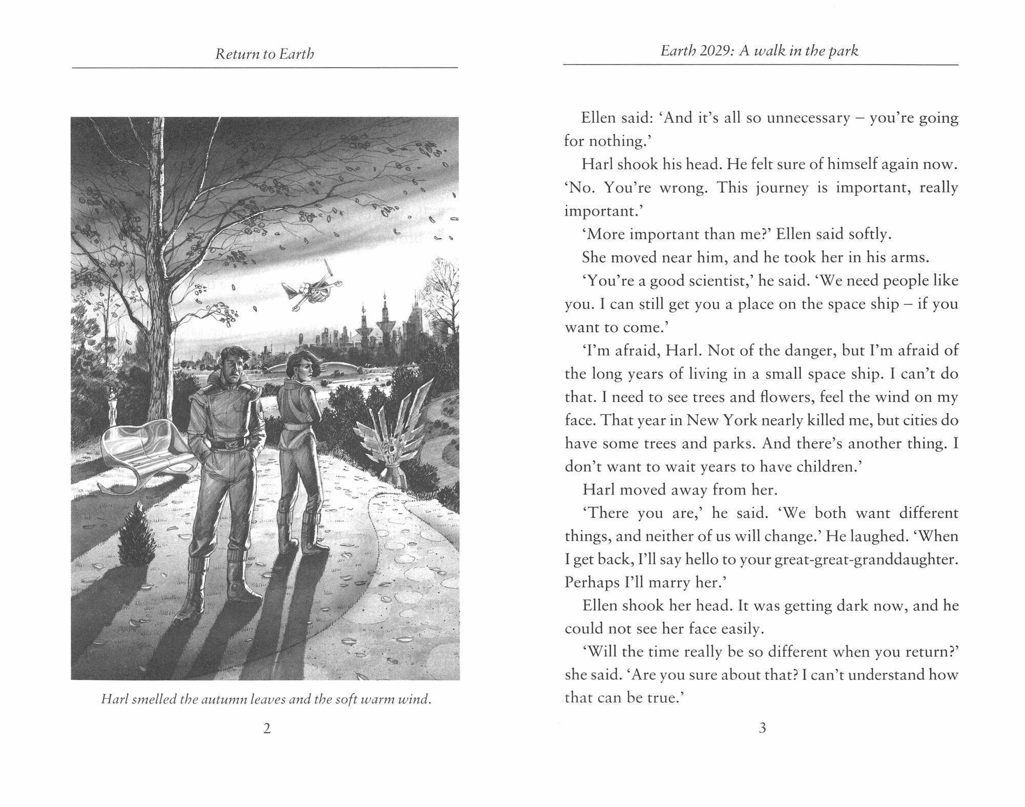 In the distant future, Harl and Ellen talk about their work and their lives. Their work as scientists is more important to them than love. Harl plans to leave Earth, on a long journey through space. Ellen plans to stay on Earth, to change the way the human mind works. When Harl returns to Earth, the world will be a very different place.