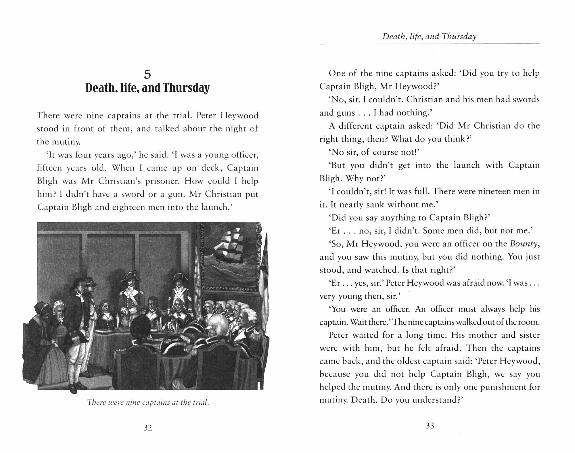 It is night in the south seas near Tahiti, and the ship HMS Bounty has begun the long voyage home to England. But the sailors on the ship are angry men, and they have swords and guns. They pull the captain out of bed and take him up on deck. He tries to run, but a sailor holds a knife to his neck. 'Do that again, Captain Bligh, and you're a dead man!' he says. The mutiny on the Bounty happened in April, 1789. This is the true story of Captain Bligh and Fletcher Christian, and the ship that never came home to England.