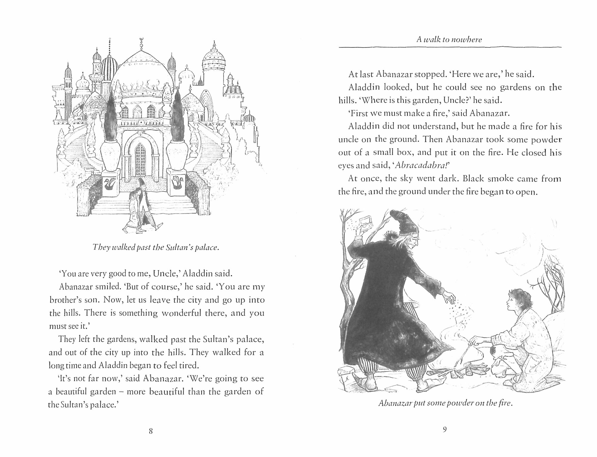 In a city in Arabia there lives a boy called Aladdin. He is poor and often hungry, but one day he finds an old lamp. When he rubs the lamp, smoke comes out of it, and then out of the smoke comes a magical jinnee. With the jinnee's help, Aladdin is soon rich, with gold and jewels and many fine things. But can he win the love of the Sultan's daughter, the beautiful Princess Badr-al-Budur?