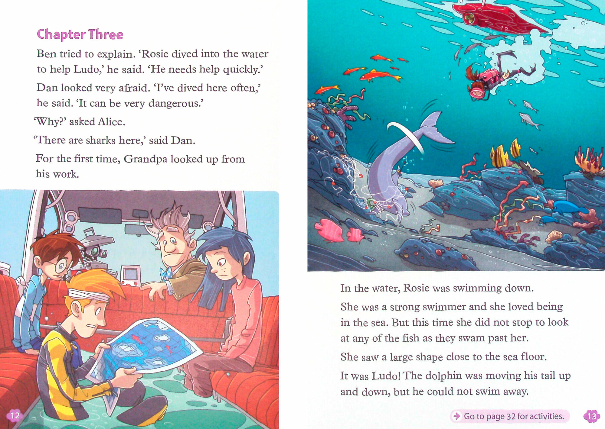 Dan the scientist works with dolphins. Ludo the dolphin is under the water and can't breathe, so Rosie dives in to help him. But what happens? The sea can be dangerous - there might be sharks!