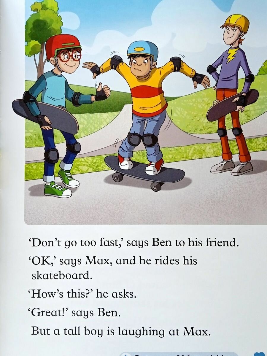 Ben and Max are skateboarding in the park. What happens when a tall boy called Flip laughs at Max? And why is Flip scared when he rides Grandpa's new skateboard?
