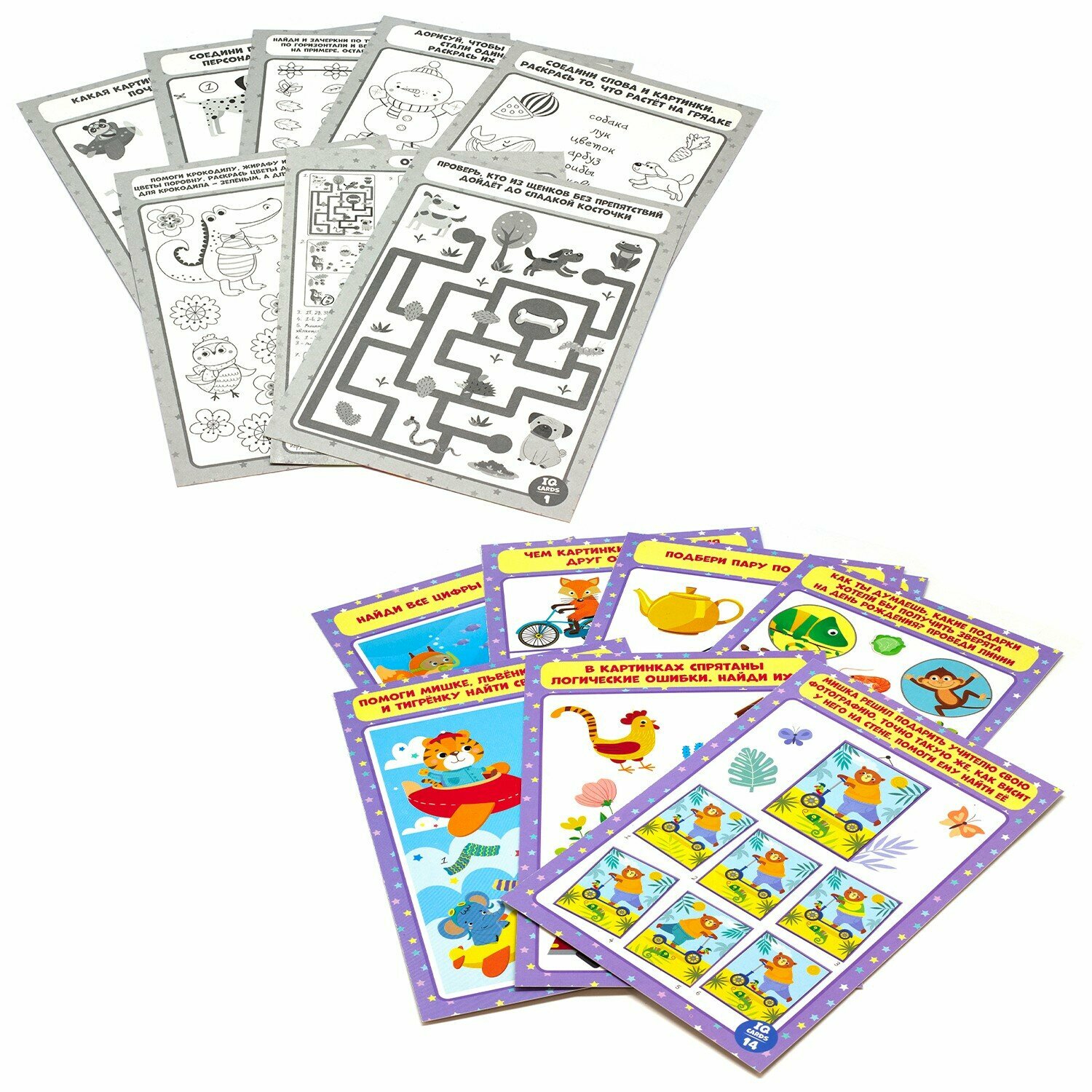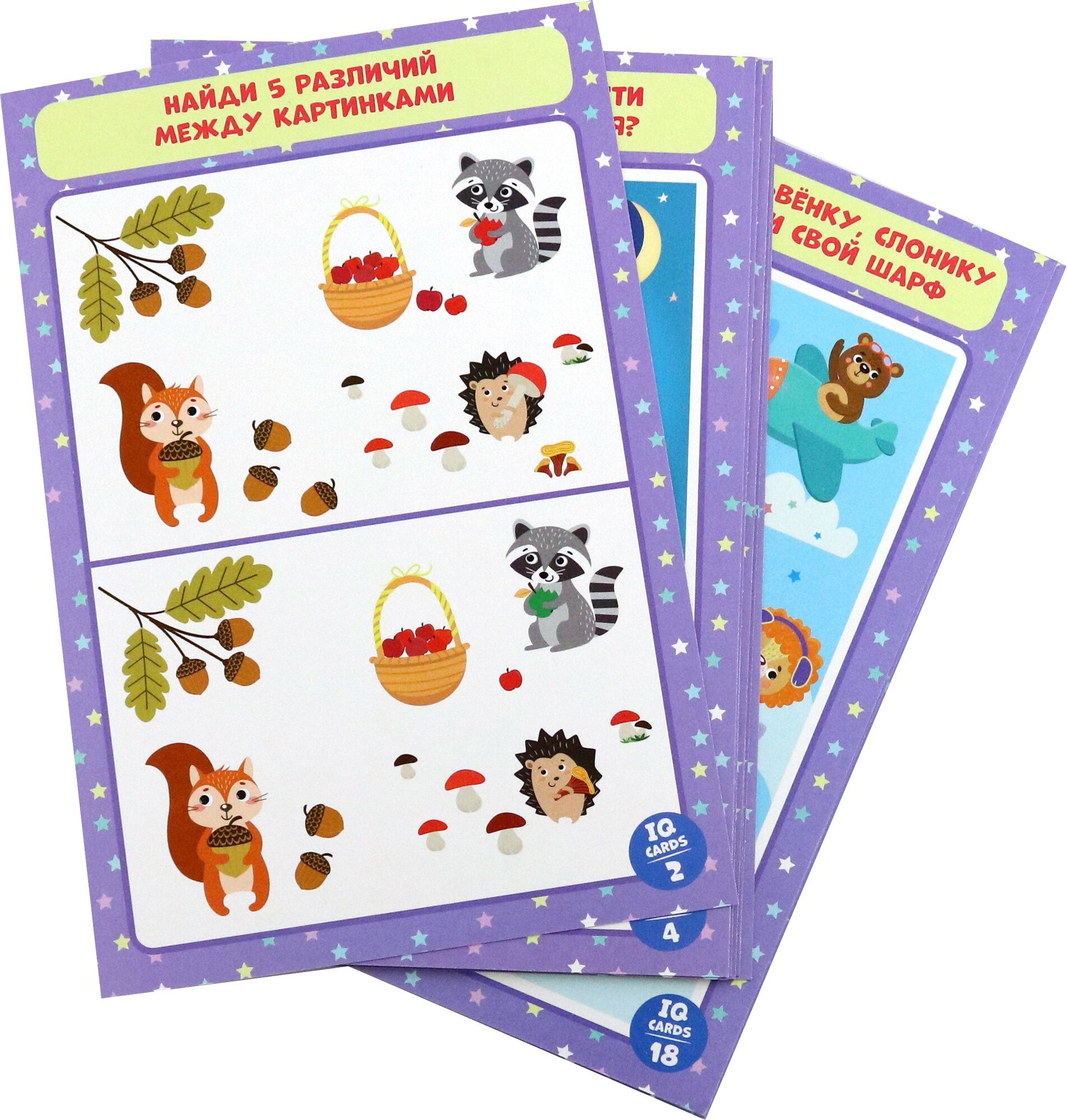 IQ-карточки с любимыми героями и развивающими заданиями научат ребенка сравнивать и различать, находить лишнее, определять закономерность и многому другому!