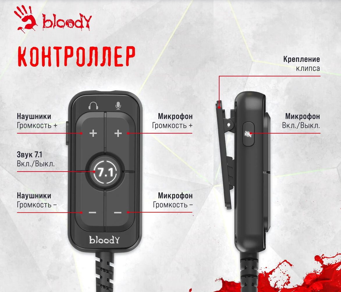 50-мм мембрана изготовлена из наномицелия и углеродного волокна с использованием передовых биотехнологий. Фирменный звук Bloody обеспечивает четкие высокие и средние частоты с глубокими басами, что дает игровое преимущество.Звуковая карта с эффектом объемного звучания 7.1 без драйверов, обеспечивающая естественный звук.Съемный AI-ENC микрофон помогает фильтровать окружающие шумы и обеспечивает комфортное общение в чате или по телефону.Гарнитуру можно отрегулировать до идеальной посадки с помощью мягкого оголовья и прочного слайдера из качественной нержавеющей стали.3D-амбушюры из протеиновой кожи обеспечивают комфорт при длительном ношении.Гарнитура оснащена аудиокабелем 3.5 мм и контроллером с подключением через USB (длина кабеля 200 см). Функции удаленного управления: микрофон +/-, выкл. звука микрофона, вкл./выкл. звукового эффекта 7.1. Контроллер имеет удобную клипсу для крепления. Совместимость с Xbox, PS 4/5, Switch, Mobile, ПК и другими устройствами.