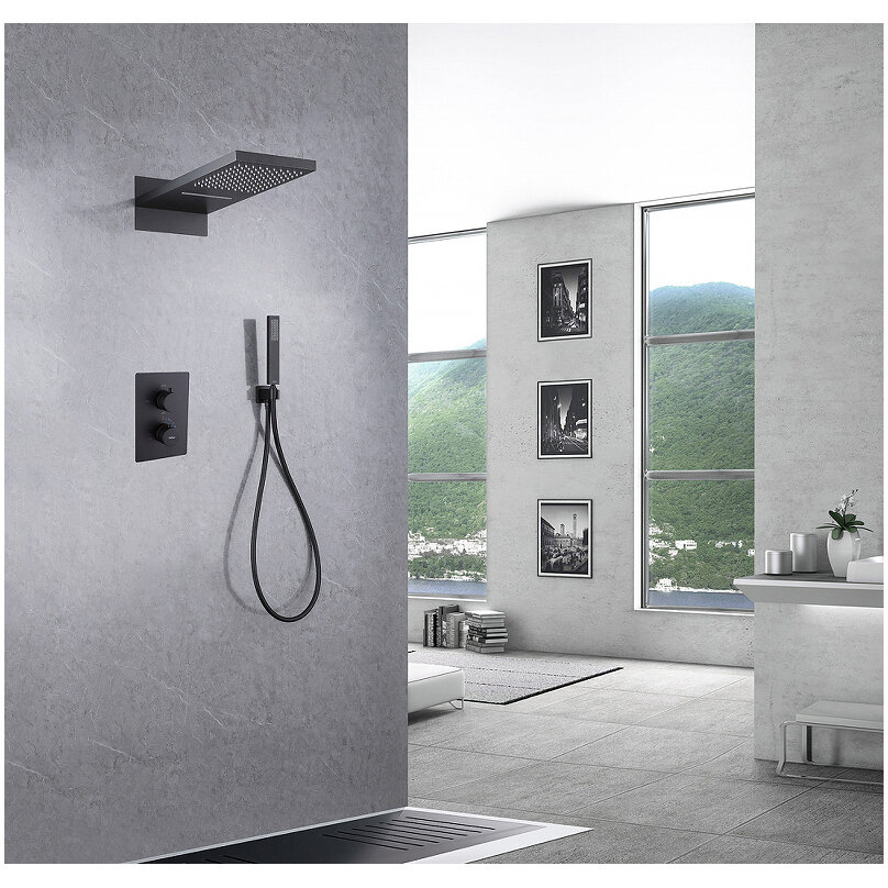 Душевая система Abber Weiss Insel AF8052B с термостатом Черная матовая