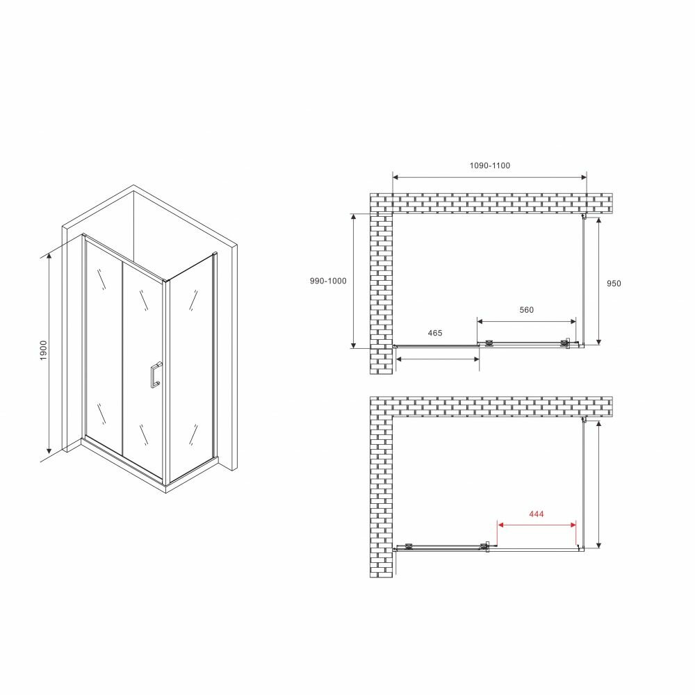 Модель: Schwarzer Diamant 110x100 AG30110B5-S100B5 профиль Черный стекло прозрачное