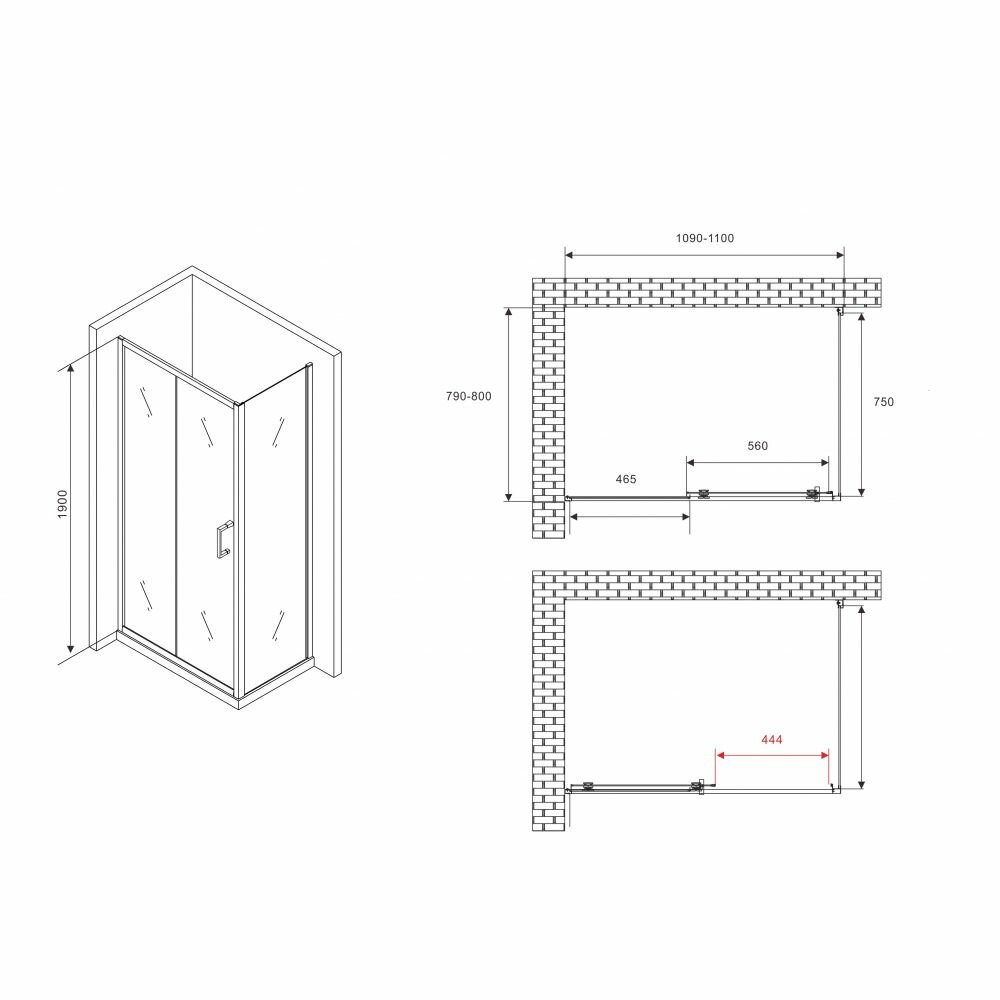 Душевой уголок Abber Schwarzer Diamant 110x80 AG30110B5-S80B5 профиль Черный стекло прозрачное