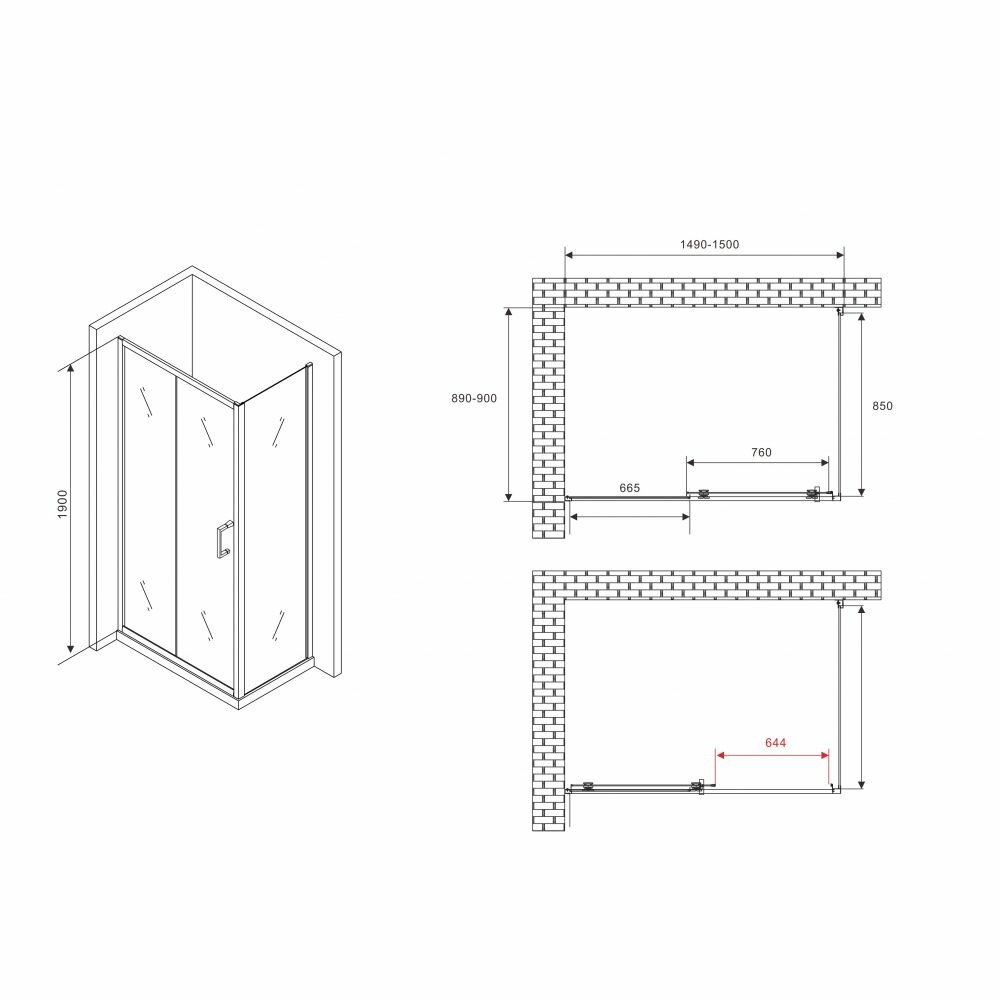 - Размеры (ШхВхД): 1500х1900х900 мм.