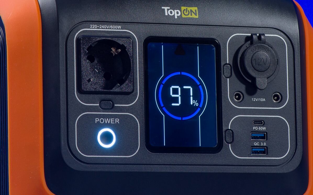 Зарядить TopON можно с помощью сетевого блока питания, автомобильной розетки или солнечной панели. Для зарядки выделен отдельный 8 мм порт DC, поддерживающий входной ток до 100W с диапазоном напряжения 12-30V, что позволяет заряжать электростанцию от различных источников питания. Порт USB Type-C так же может использоваться для зарядки электростанции через протокол USB Power Delivery 60W. Благодаря улучшенному BMS контроллеру портативную электростанцию можно быстро зарядить всего за 3.5 часа до 80% и за 5 часов до 100%, используя одновременную зарядку мощностью 160W через порт DC и USB Type-C. Встроенный MPPT (Maximum Power Point Tracking) контроллер позволяет на 15% эффективнее заряжать электростанцию от солнечной панели, поэтому при использовании в связке с солнечной панелью превращается в полноценную солнечную электростанцию, обеспечивая чистой энергией от возобновляемых источников.