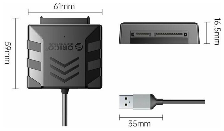 ORICO- - адаптер USB 3.0 SATA, для подключения HDD/SSD внешних дисков форм-фактора 2,5 дюйма. Для жестких дисков 3,5-дюйма необходимо дополнительное питание. Внешний интерфейс USB 3.0 со скоростью передачи данных до 5Гбит/с. В коплект поставки входит адаптер питания 12В 2A Открытая конструкция подключения внешнего диска и термостойкий ABS-пластик обеспечивают эффективный отвод тепла. Не требует инструментов для подключения жесткого диска и поддерживает «горячее» извлечение и замену подходит для ПК, ноутбука, планшета, смартфона, HD плеера и SmartTV. Совместим с операционными системами семейств Windows, Linux, Mac и др., обеспечивая быструю и стабильную работу. Световой индикатор подскажет режим работы устройства.