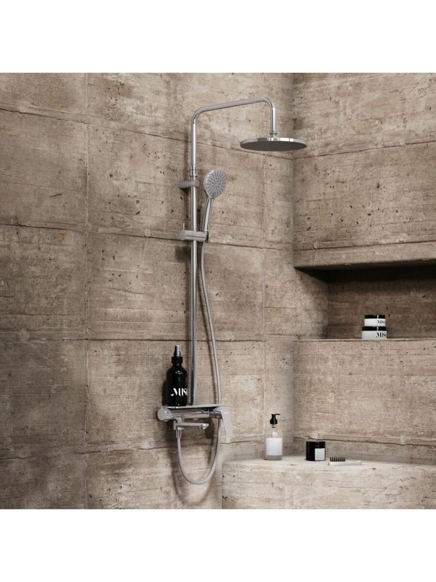 Удобная и практичная душевая система. Есть все для принятия качественной процедуры и испытать удовольствие. Большая тарелка верхнего душа дает струи как при дожде и приятно успокаивает. Лейка гибкого душа прочно устанавливается на нужной высоте. Все работает надежно.