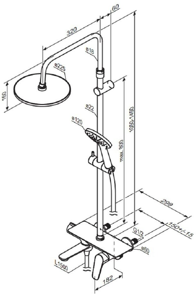 | Комплектация | смеситель, ручной душ,верхний душ, эксцентрики, штанга, держатели штанги |