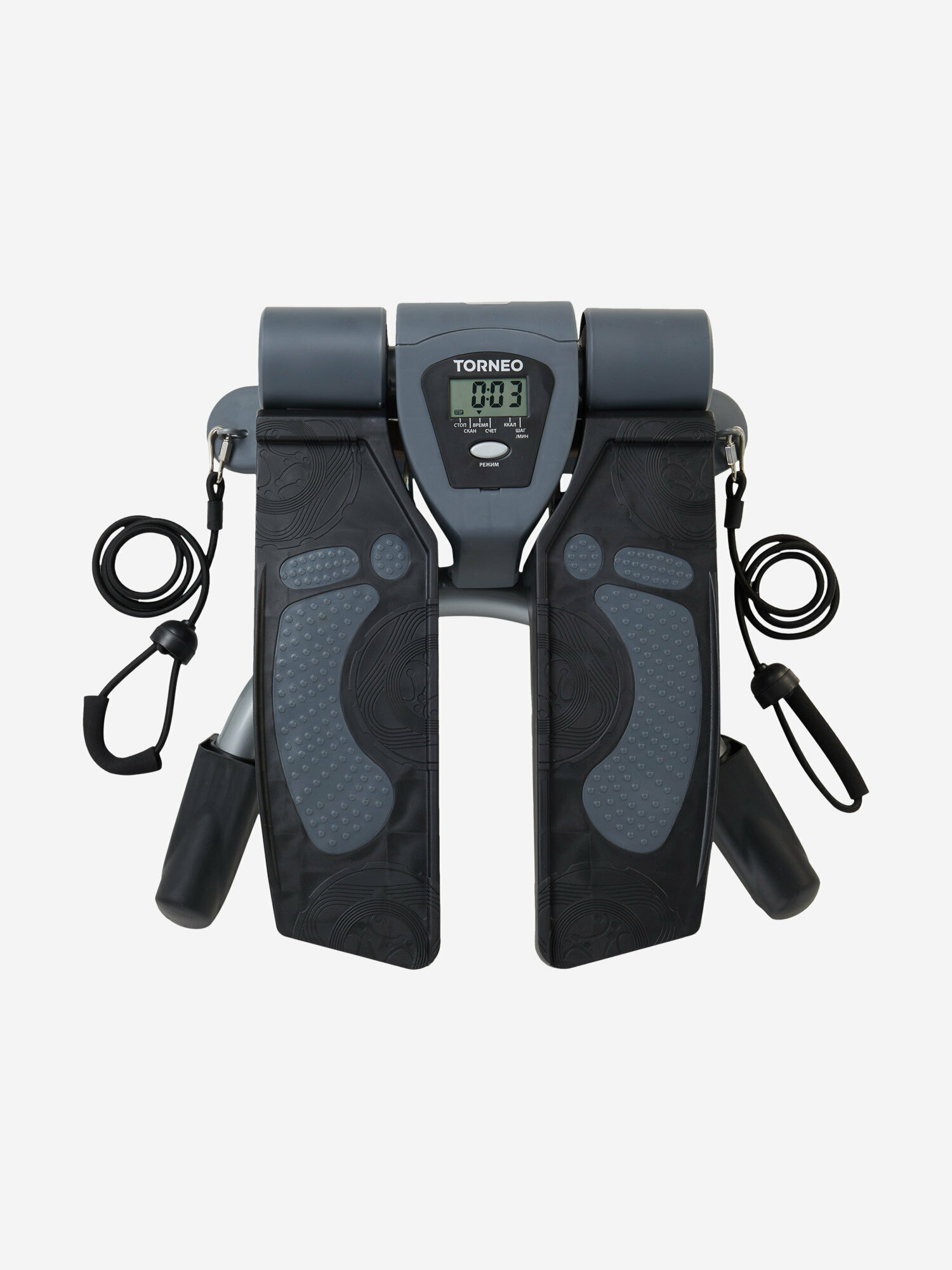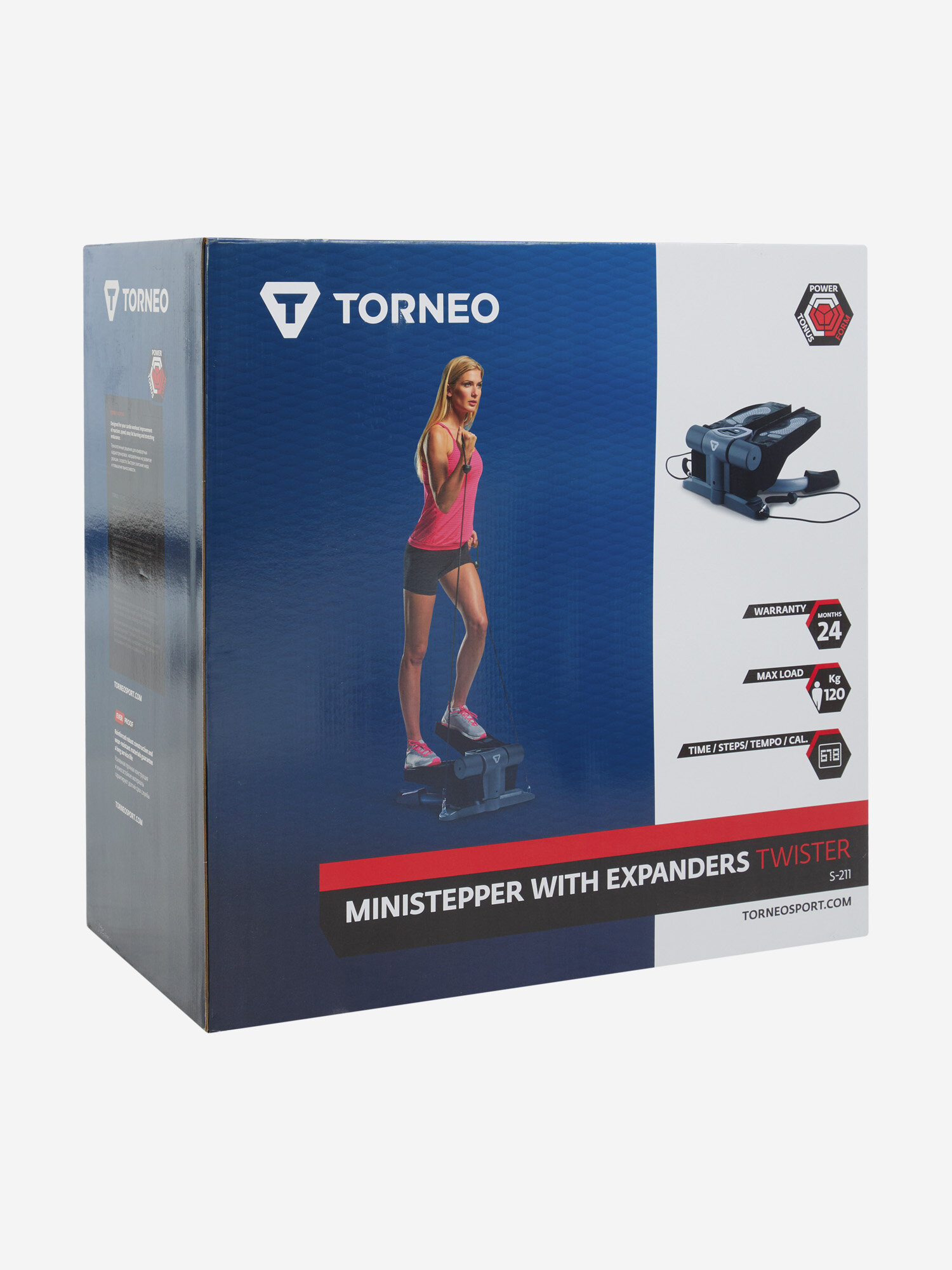 Мини-степпер Torneo Twister — легкий и компактный способ привести себя в форму без лишних усилий и затрат. Тренажер предварительно собран и готов к использованию, он займет минимум места в вашем доме и станет незаменимым помощником в борьбе за подтянутое тело. Встроенный LCD-дисплей позволит отслеживать количество шагов, время тренировки и расход калорий, а взаимозависимый ход педалей и поворотный механизм сделают ваши тренировки более эффективными и разнообразными. Усиленная конструкция EverProof гарантирует долгий срок службы, а 2 эспандера в комплекте помогут дополнительно проработать мышцы рук и плечевого пояса.