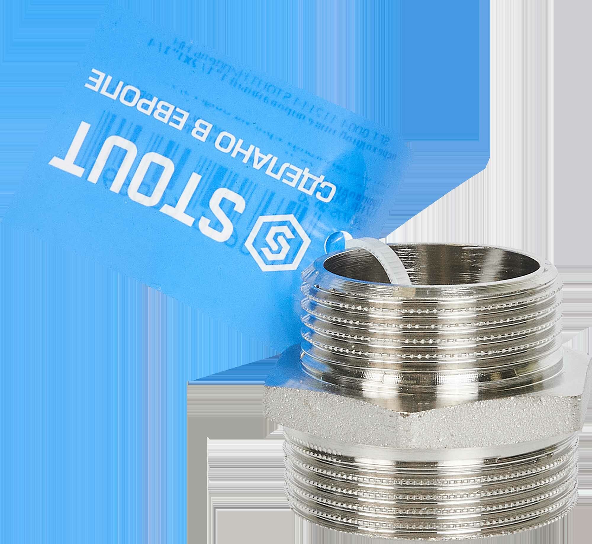 **Ниппель Stout SFT-0004-112112** предназначен для обустройства системы водоснабжения. Позволяет выполнить переход с одного диаметра трубы на другой - с 1 1/2 на 1 1/4 дюйма, стянуть их и зафиксировать между собой. Обеспечивает создание герметичного соединения.