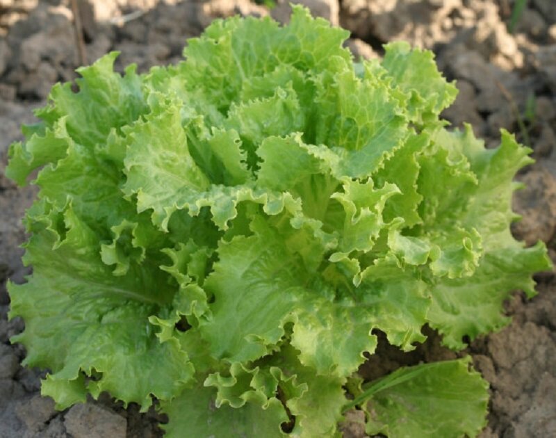 **Салат «Кучерявец Грибовский»** — полукочанный сорт, созревающий за 45 дней. Кочан рыхлый, розетка приподнята над землей. Лист веерообразный, массивный, нежно-зеленого цвета, хорошего вкуса. Салат отличается длительной сохранностью и продолжительным периодом использования. Посев — с начала мая.