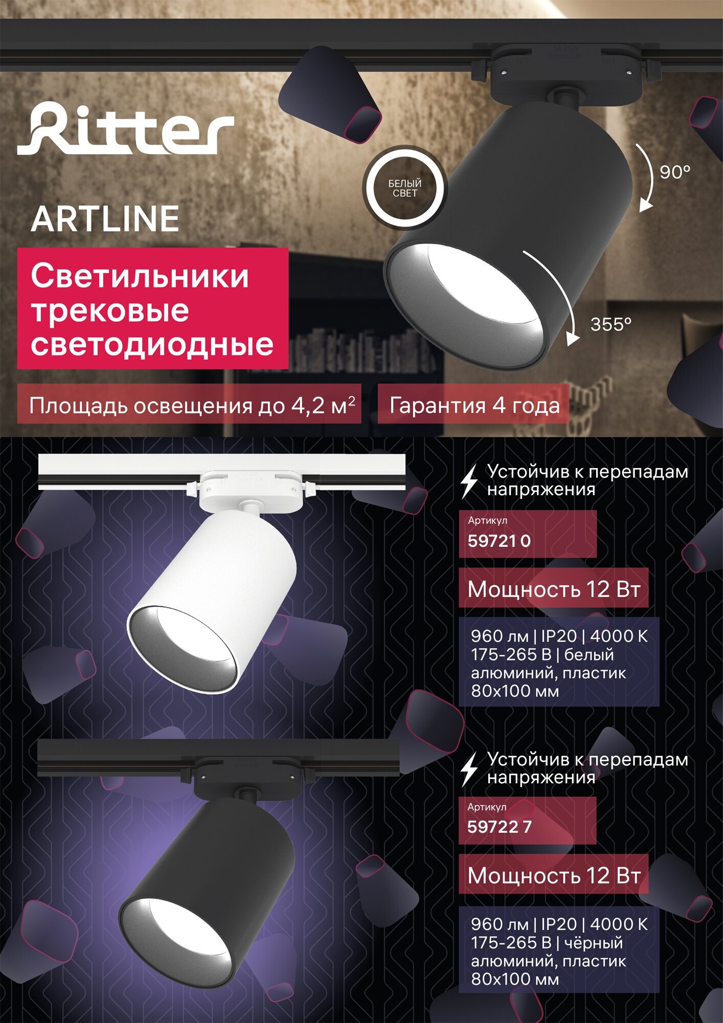 **Трековый светильник Ritter Artline** — предназначен для освещения жилых комнат и помещений общего пользования.
