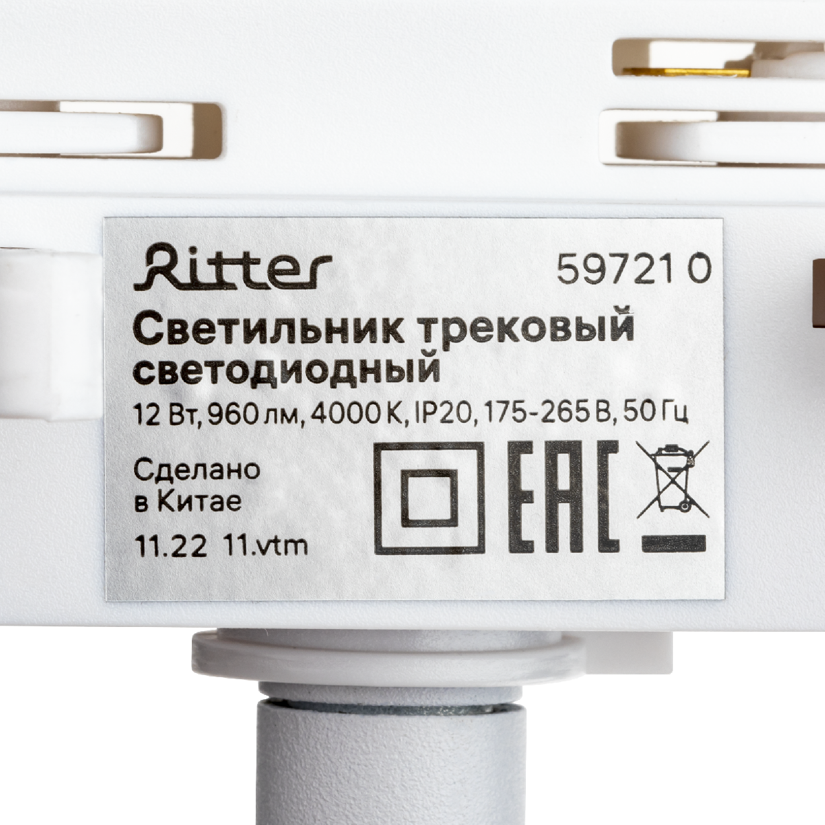 Трековый светильник поставляется в брендовой упаковке Ritter в комплекте с паспортом изделия.