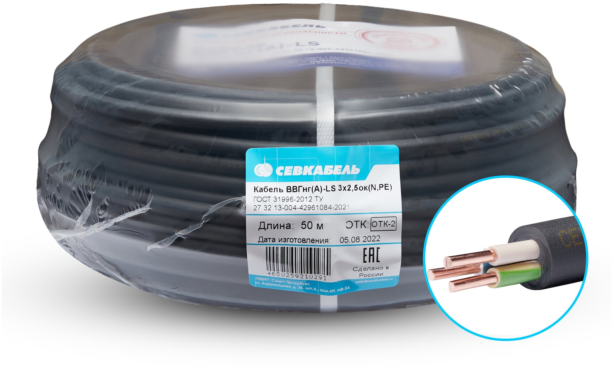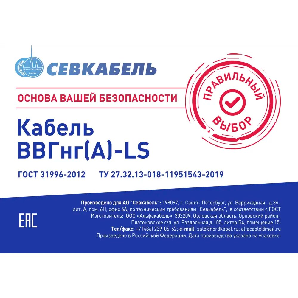 Кабель Севкабель ВВГнг-LS 3x2.5 50 м