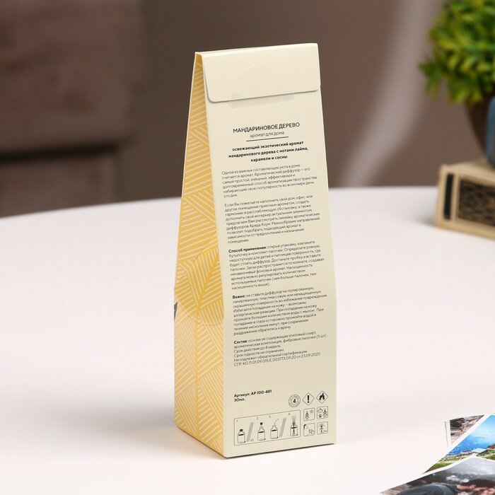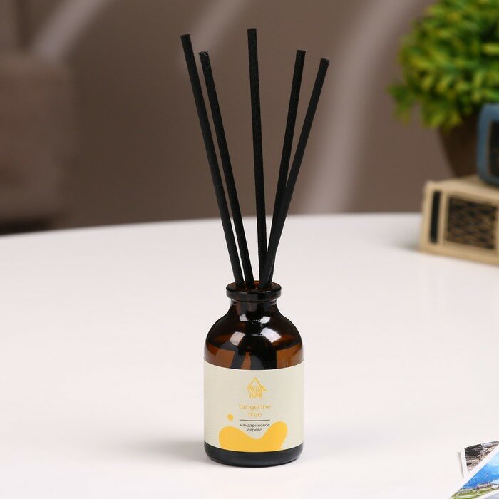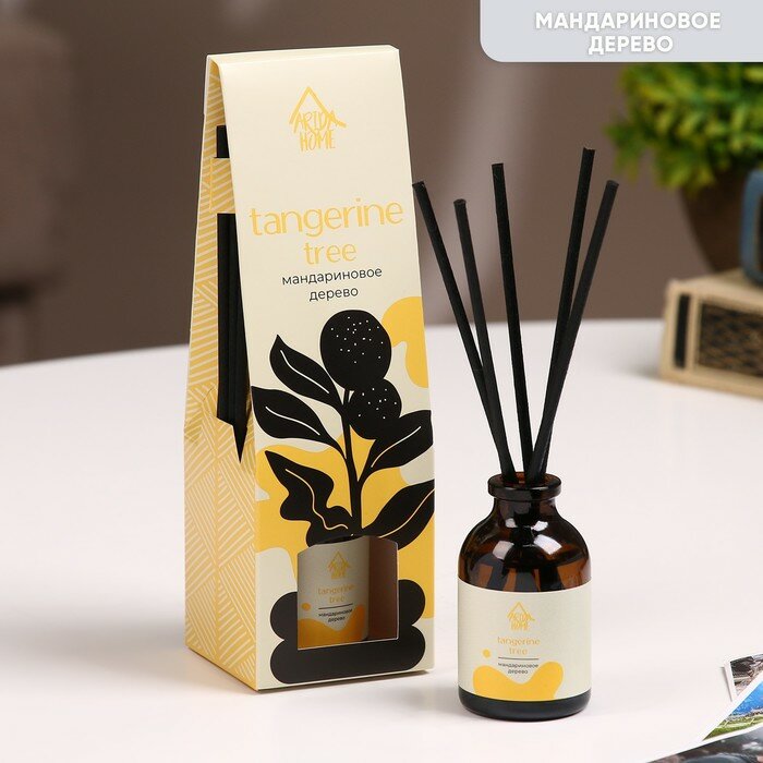 **Ароматический диффузор Arida Home Мандариновое дерево** - простое и удобное решение, при помощи которого за считанные минуты можно наполнить помещение (жилое или офисное) ненавязчивым приятным ароматом. Способствует формированию уютной и расслабляющей обстановки. Характеризуется простотой использования. Достаточно установить бутылочку на ровную поверхность, недоступную для детей и питомцев, и поместить в нее палочки - при помощи количества последних можно регулировать интенсивность аромата. Во избежание повреждений не рекомендуется ставить диффузор на следующие поверхности: полированную, лакированную, пластмассовую или незащищенную окрашенную.