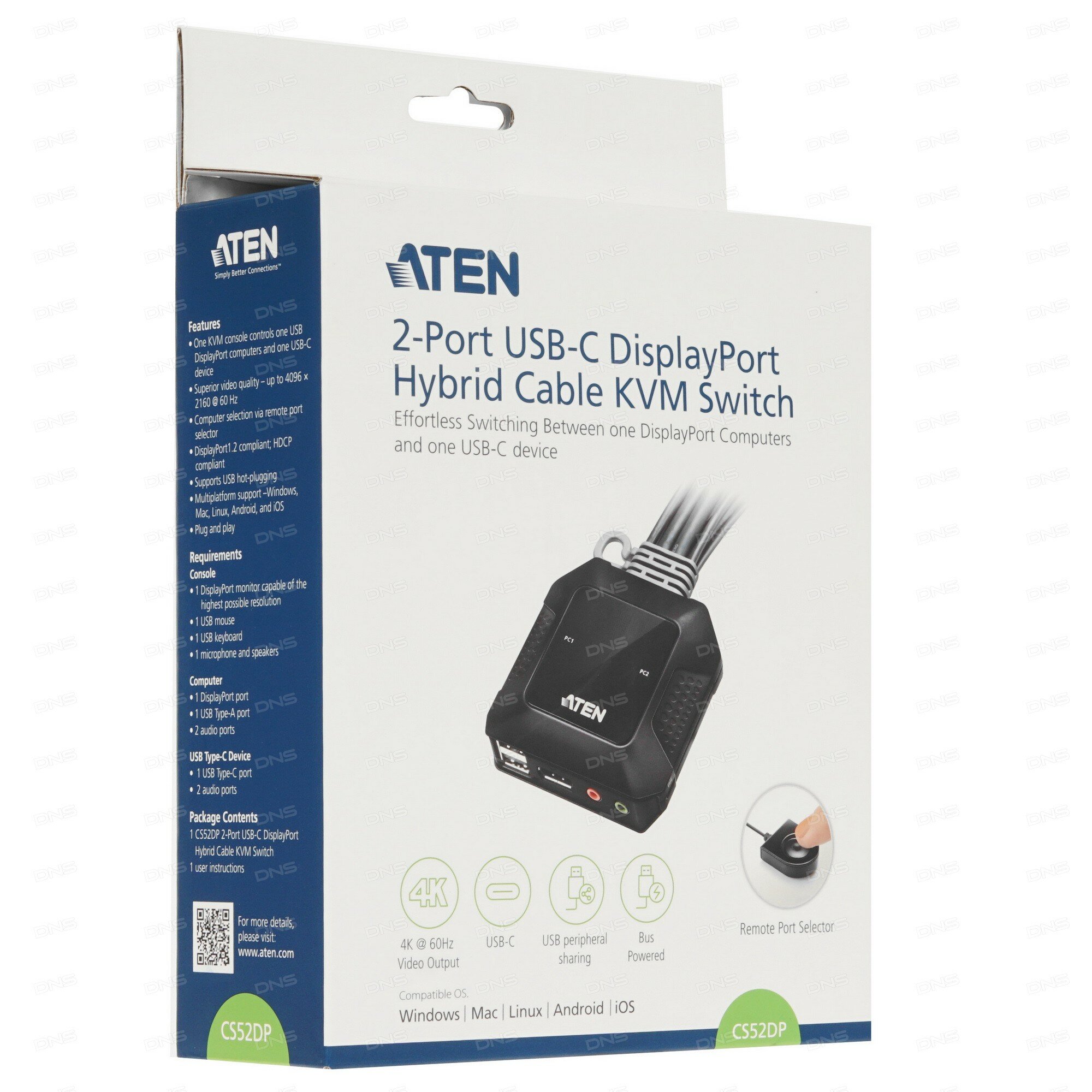 ATEN CS52DP Переключатель/ 2-Port 4K Displayport +UCB-C Switch with audio and Remote Port Selector