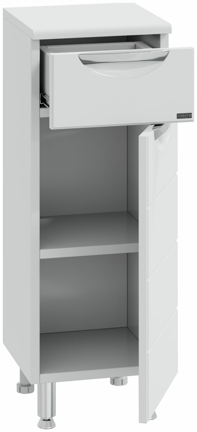 Тумба напольная СаНта Родос 30 с 1 ящиком напольная предназначена для хранения различных мелочей в ванной комнате. Комод в ванную комнату изготовлен из влагостойких материалов, фасад и столешница комода для ванны изготовлена из МДФ, корпус из влагостойкого ЛДСП. Комод для ванной комнаты оснащен ящиком полного выдвижения (без плавного закрывания). Ножки у комода для ванны идут в комплекте.