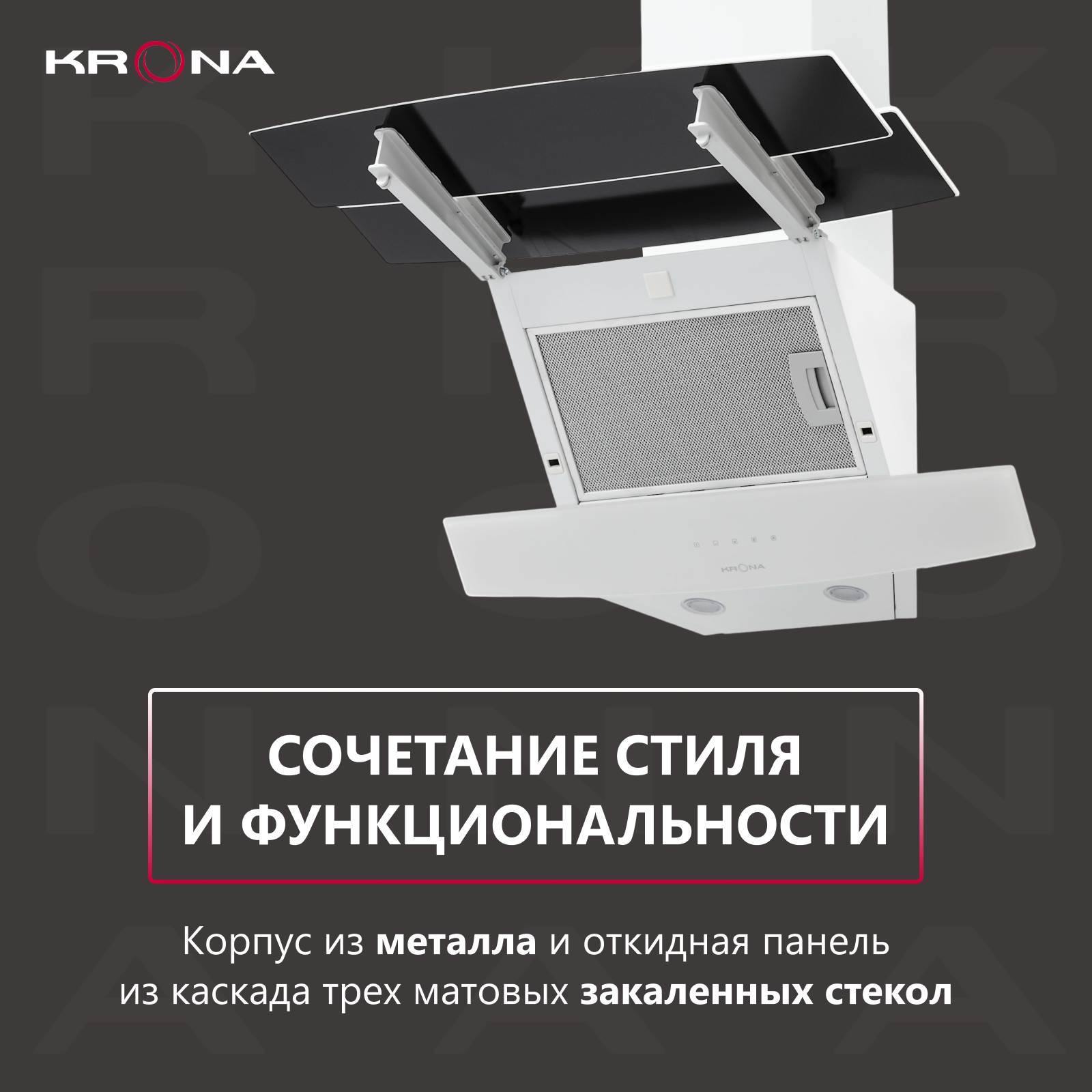 Стильная наклонная модель KRONA Melodie отличается необычным дизайном-у модели три закаленных стекла,расположенных каскадом. Такая вытяжка отлично подойдет для современной кухни, площадью до 16 кв.м. Срок службы 7 лет.