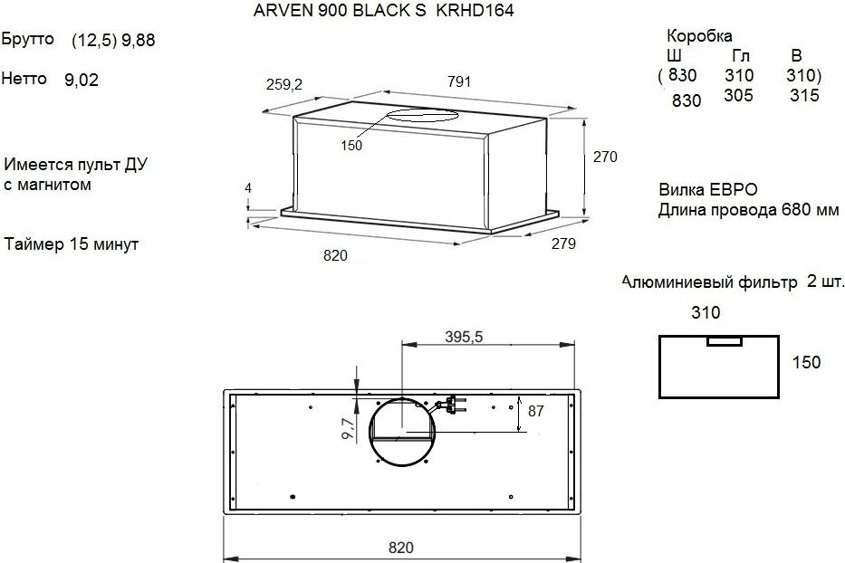 ARVEN 900 BLACK S — стильная встраиваемая модель, выполненная в черном цвете. В зависимости от ваших потребностей, можно установить одну из трех имеющихся скоростей. Режим работы можно настроить при помощи удобного сенсорного управления, а также с использованием пульта ДУ. Устройство может работать в режиме отвода или рециркуляции с установкой угольного фильтра (приобретается отдельно).