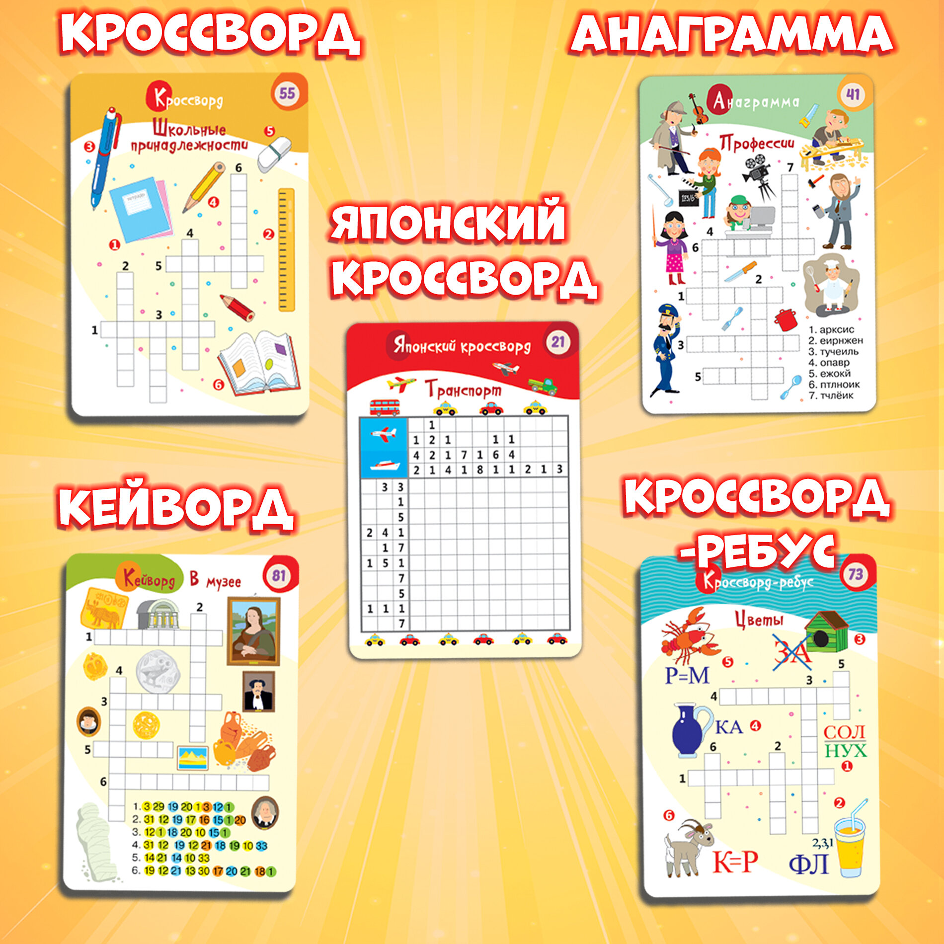 В игре собрано 10 видов кроссвордов и других головоломок: классические кроссворды с картинками, судоку, филворды, японские, немецкие, математические кроссворды, числобусы, кейворды, кроссворды-ребусы и кроссворды-анаграммы.