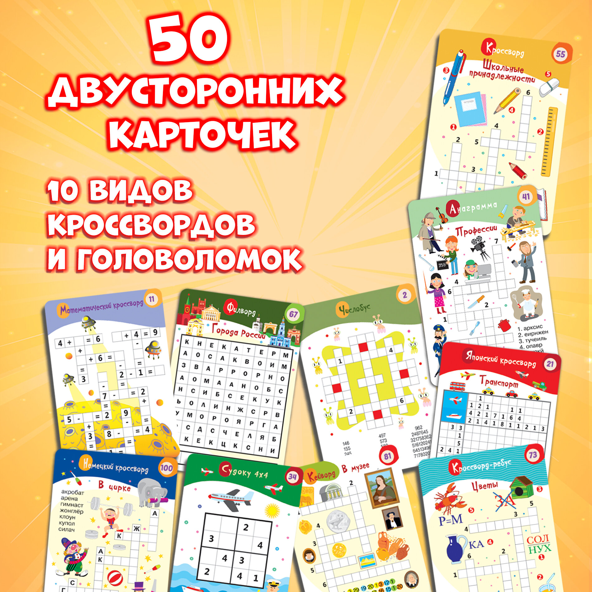 В комплекте 50 двухсторонних карточек, стирающийся маркер, брошюра с правилами и ответами.