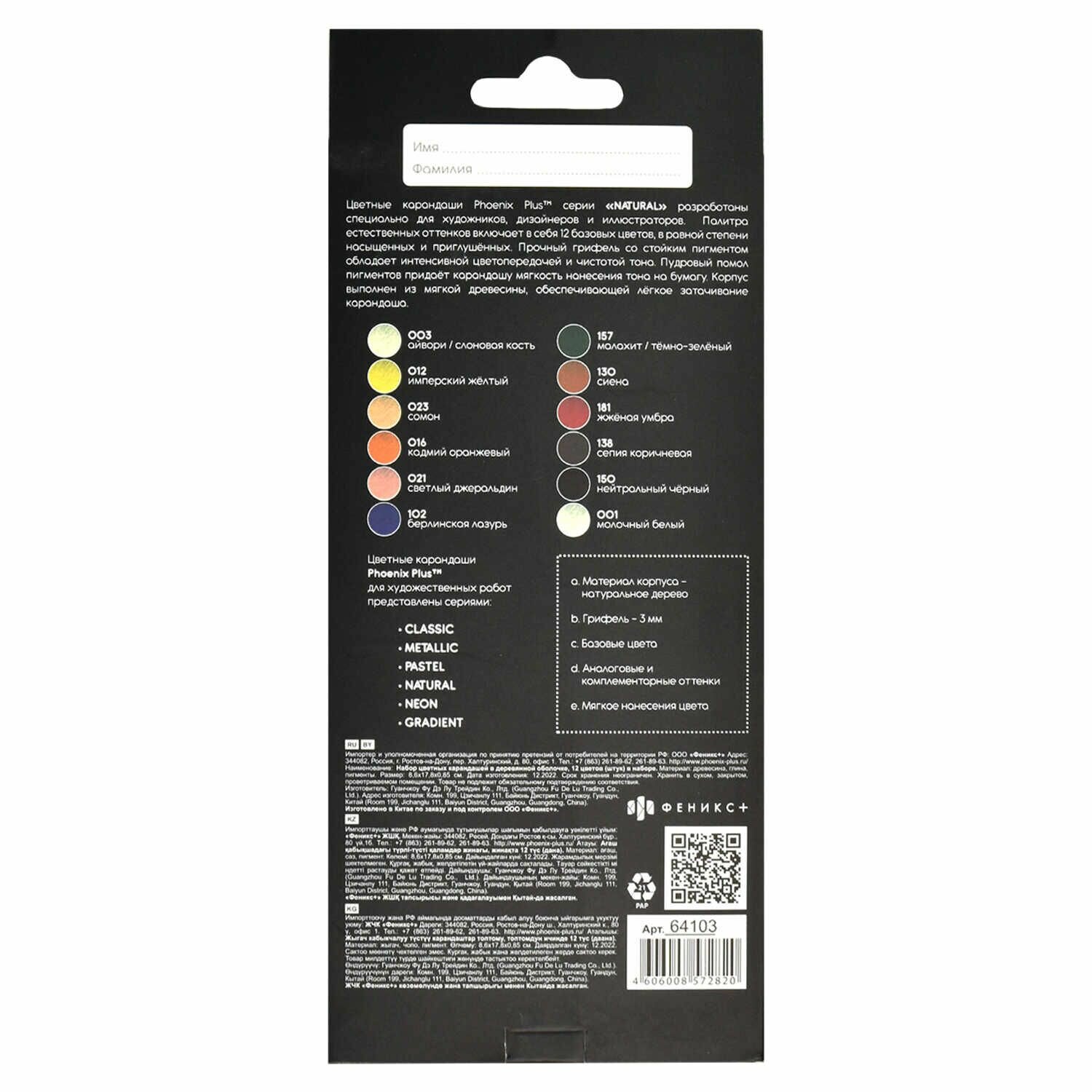 Карандаши заточенные Натурель 12 цветов Феникс+