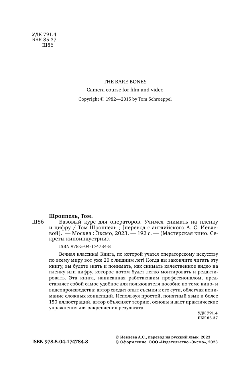Впервые на русском языке легендарная книга по операторскому искусству, по которой учатся операторскому искусству по всему миру вот уже 20 с лишним лет! "Коротко и по делу. Учимся снимать на пленку и цифру" - это базовая книга по кинопроизводству во всем мире.