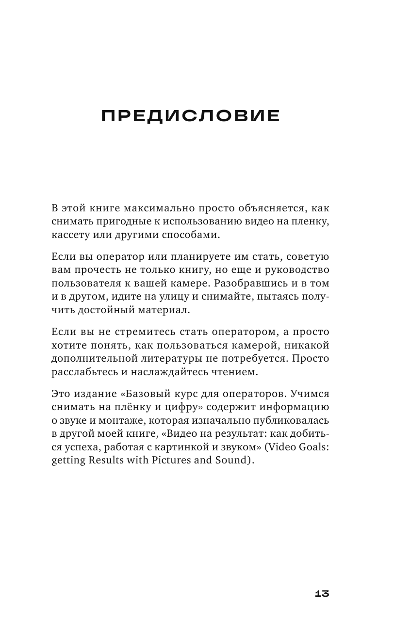 Когда вы закончите читать эту книгу, вы будете знать и понимать, как снимать действительно качественный видеоматериал, который легко будет монтировать в постобработке.