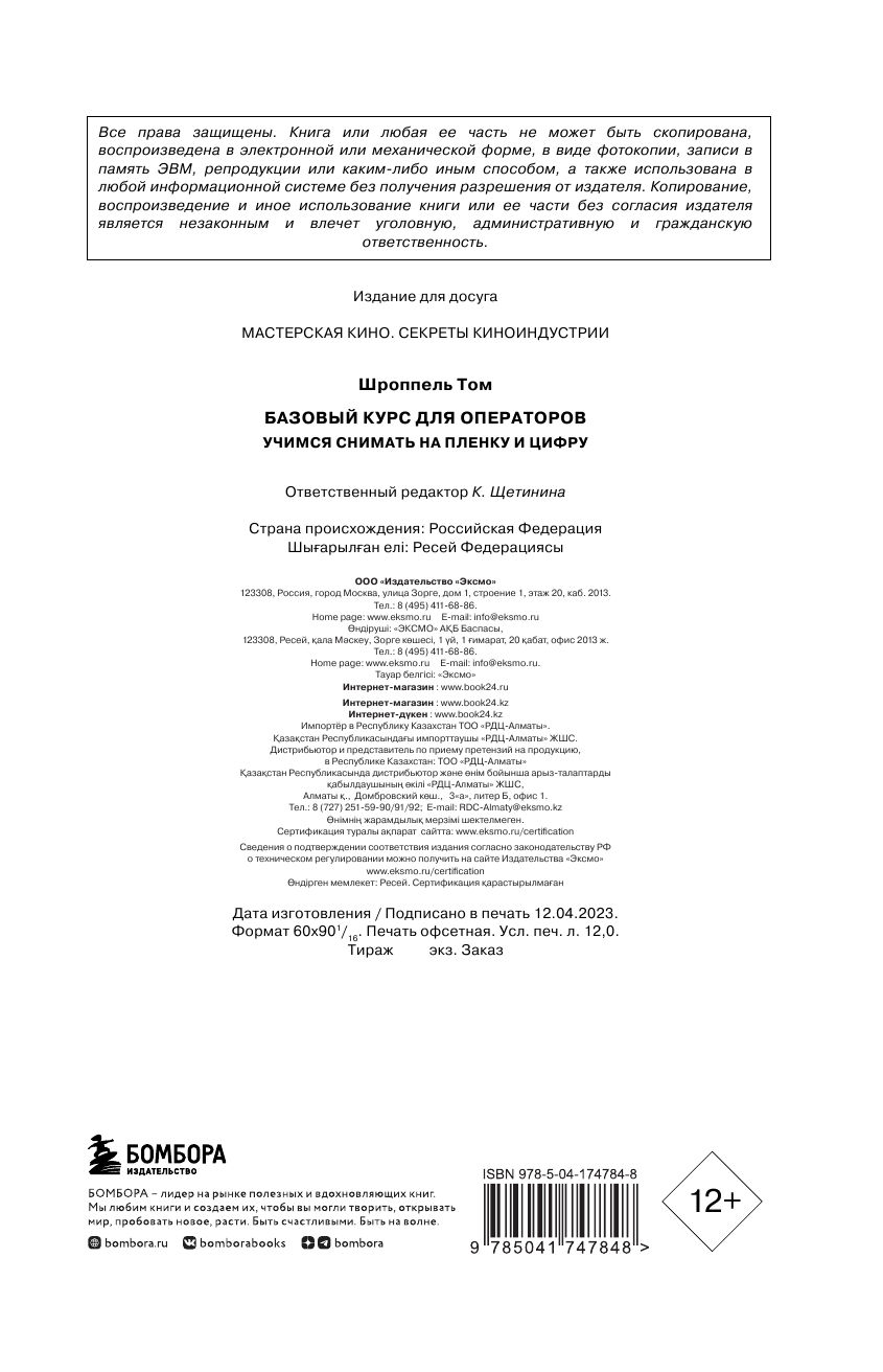 Базовый курс: Операторское искусство. Учимся снимать на плёнку и цифру (Шроппель Том); ООО "Издательство "Эксмо", 2023