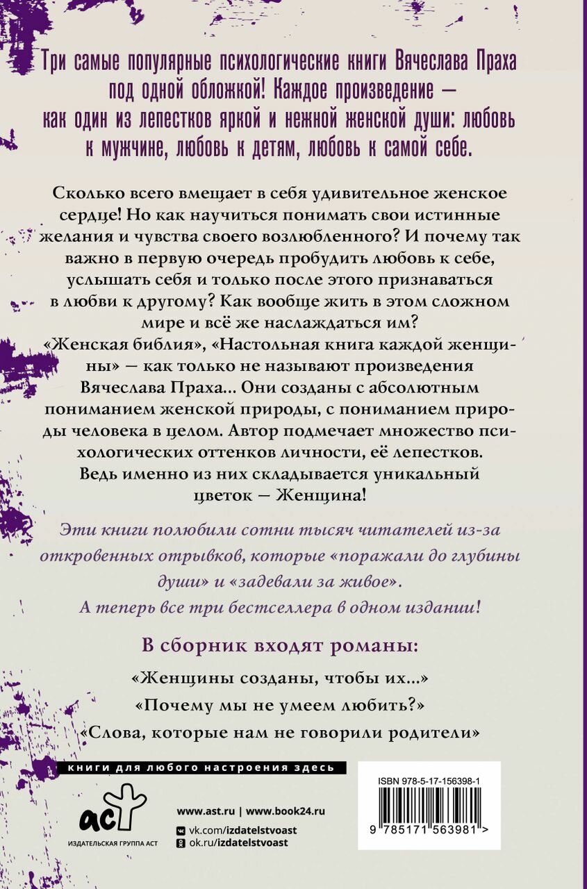 «Женская библия», «Настольная книга каждой женщины» — как только не называют произведения Вячеслава Праха… Они созданы с абсолютным пониманием женской природы, с пониманием природы человека в целом. Автор подмечает множество психологических оттенков личности, ее лепестков. Ведь именно из них складывается уникальный цветок — Женщина!