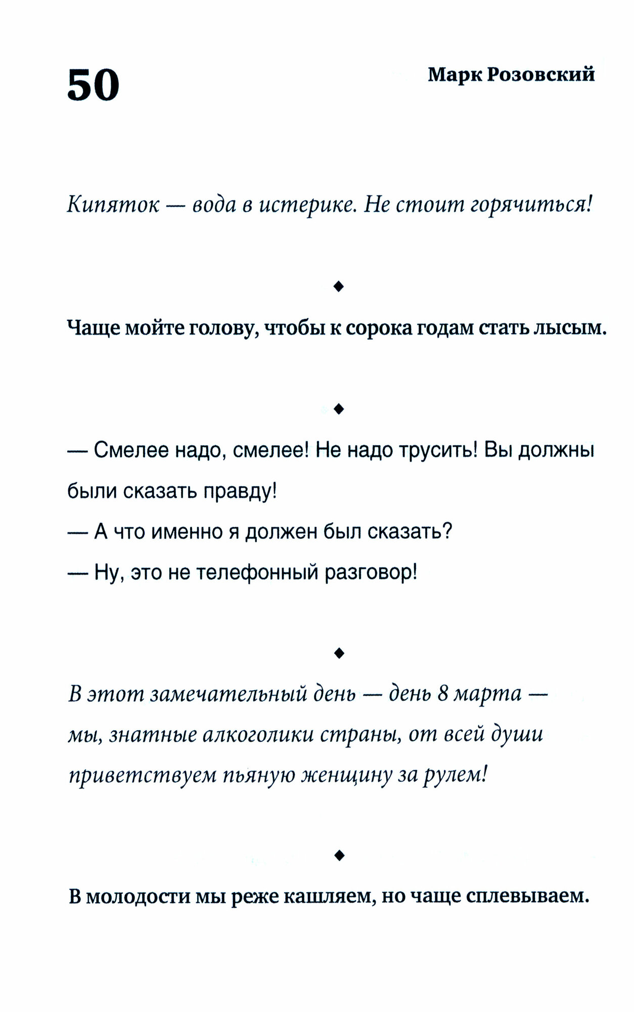 В этой книге автор - известный драматург и режиссер Марк Розовский - предлагает свое полное, многотысячное собрание перлов из записных книжек - афоризмы, фразы, замечания, отрывки из обрывков ( казалось бы, ерундистика), - которые сыпятся золотым дождем иронии, игры ума и общечеловеческой мудрости. А в результате - мы получаем развернутую картину эпохи и многоцветную мозаику жизни, сложенную из сверкающих камушков под названием " Все штучки поодиночке".