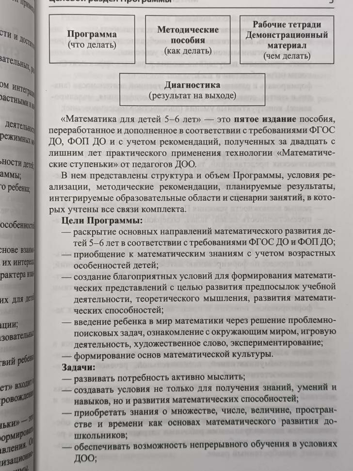 В организационно-методическое сопровождение программы «Математические ступеньки» для детей 5–6 лет входят: 1) данное методическое пособие, 2) рабочая тетрадь «Я считаю до десяти» (в двух вариантах), 3) демонстрационный материал, 4) книги дополнительного комплекта.