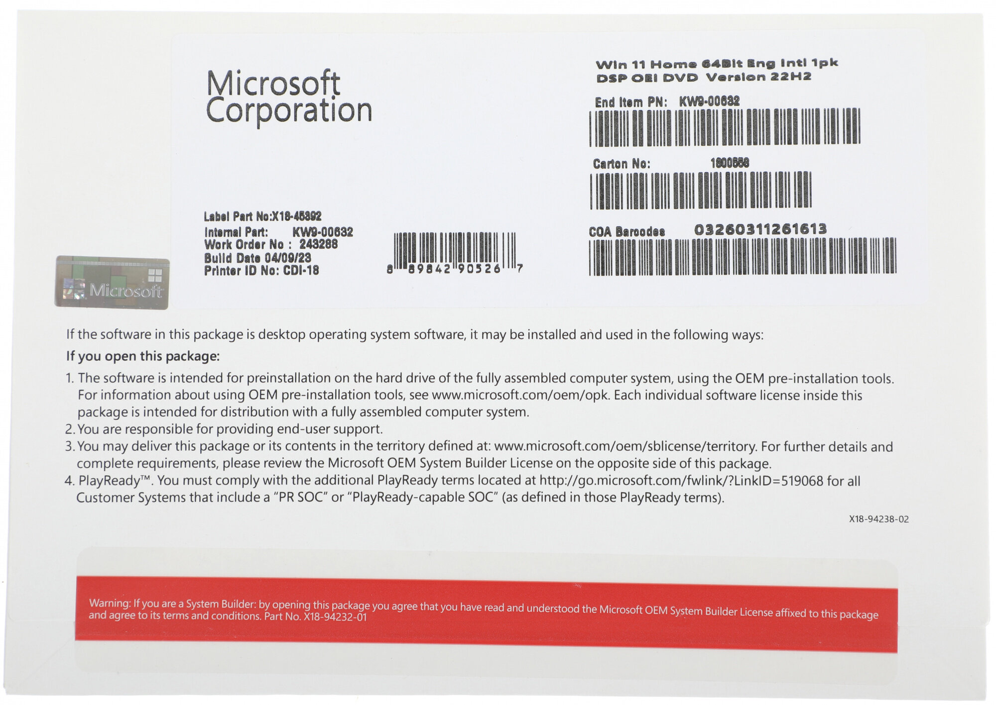 | Особенности | Версия для сборщиков систем (OEM) |